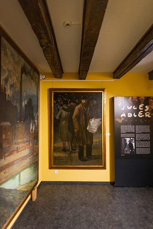 L'espace muséal Jules Adler se compose de 3 salles, répondant à 3 thématiques. Chaque salle est agrémentée de panneaux avec textes et visuels pour la visite.