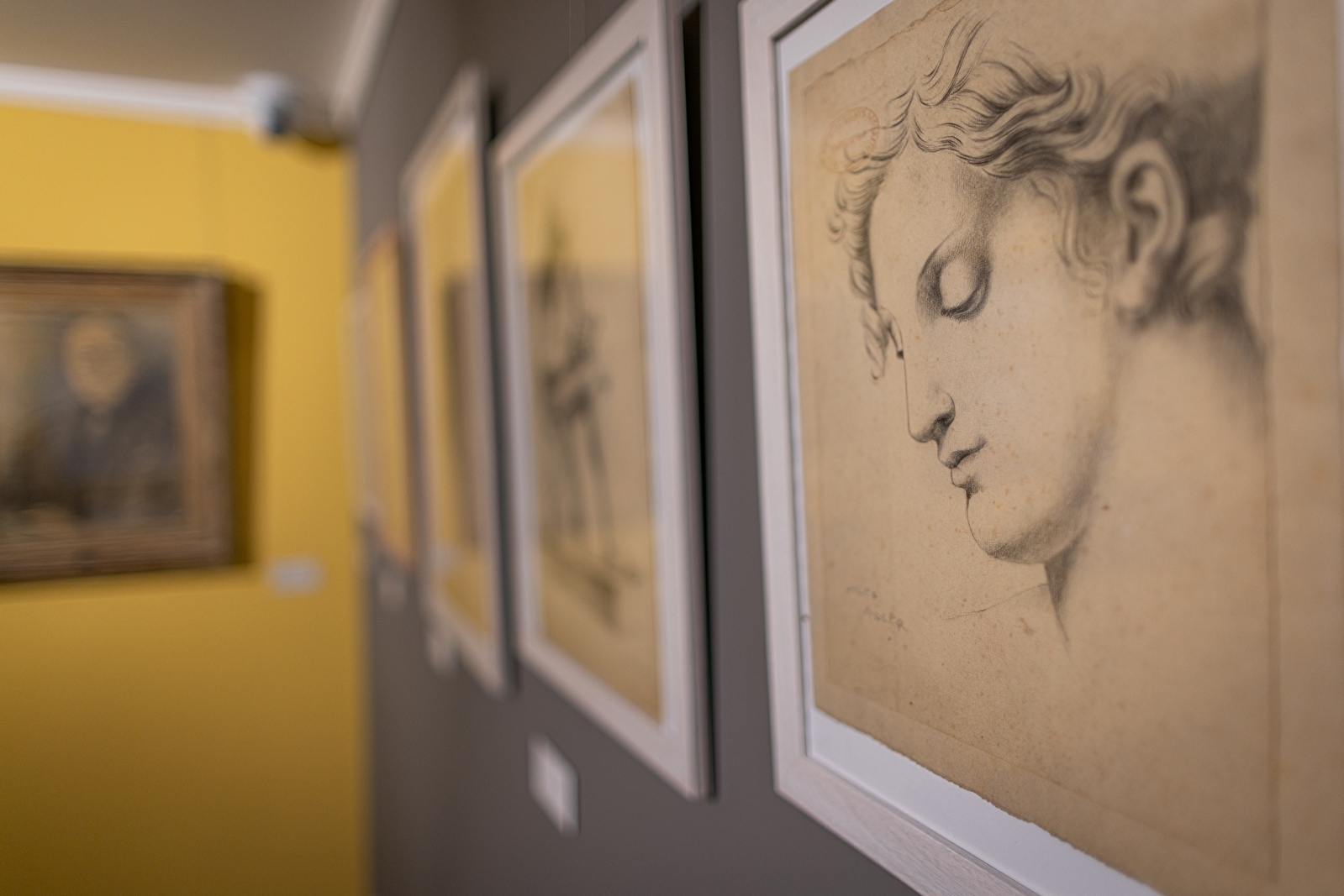 En plus des tableaux, une vitrine présente plusieurs objets personnels de Jules Adler (palette, pinceaux, documents personnels…).