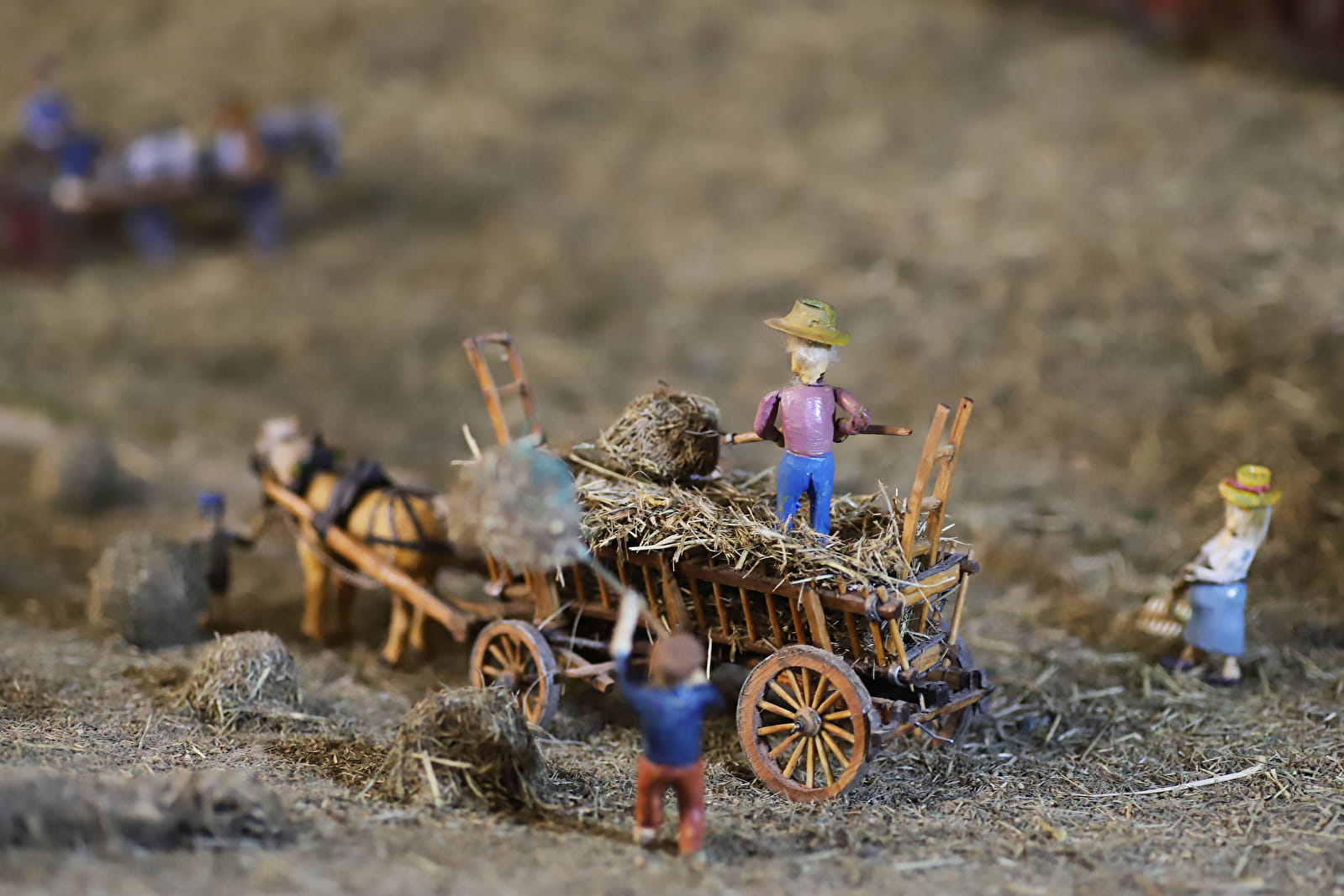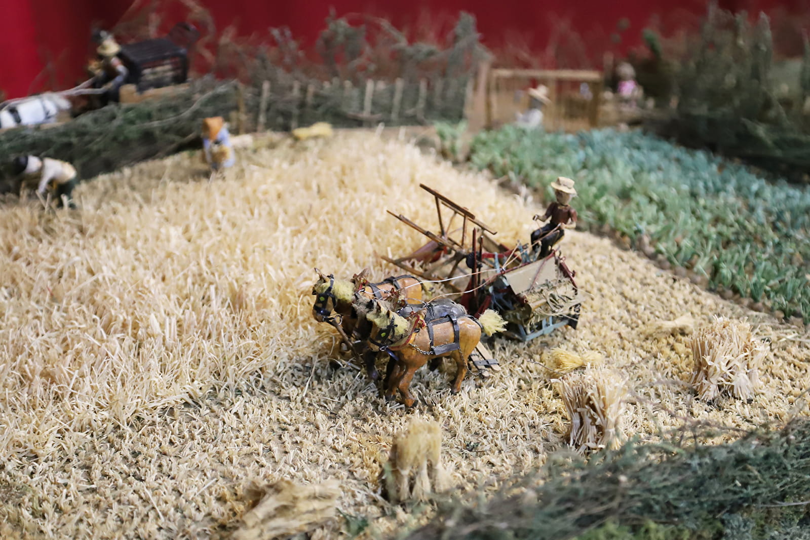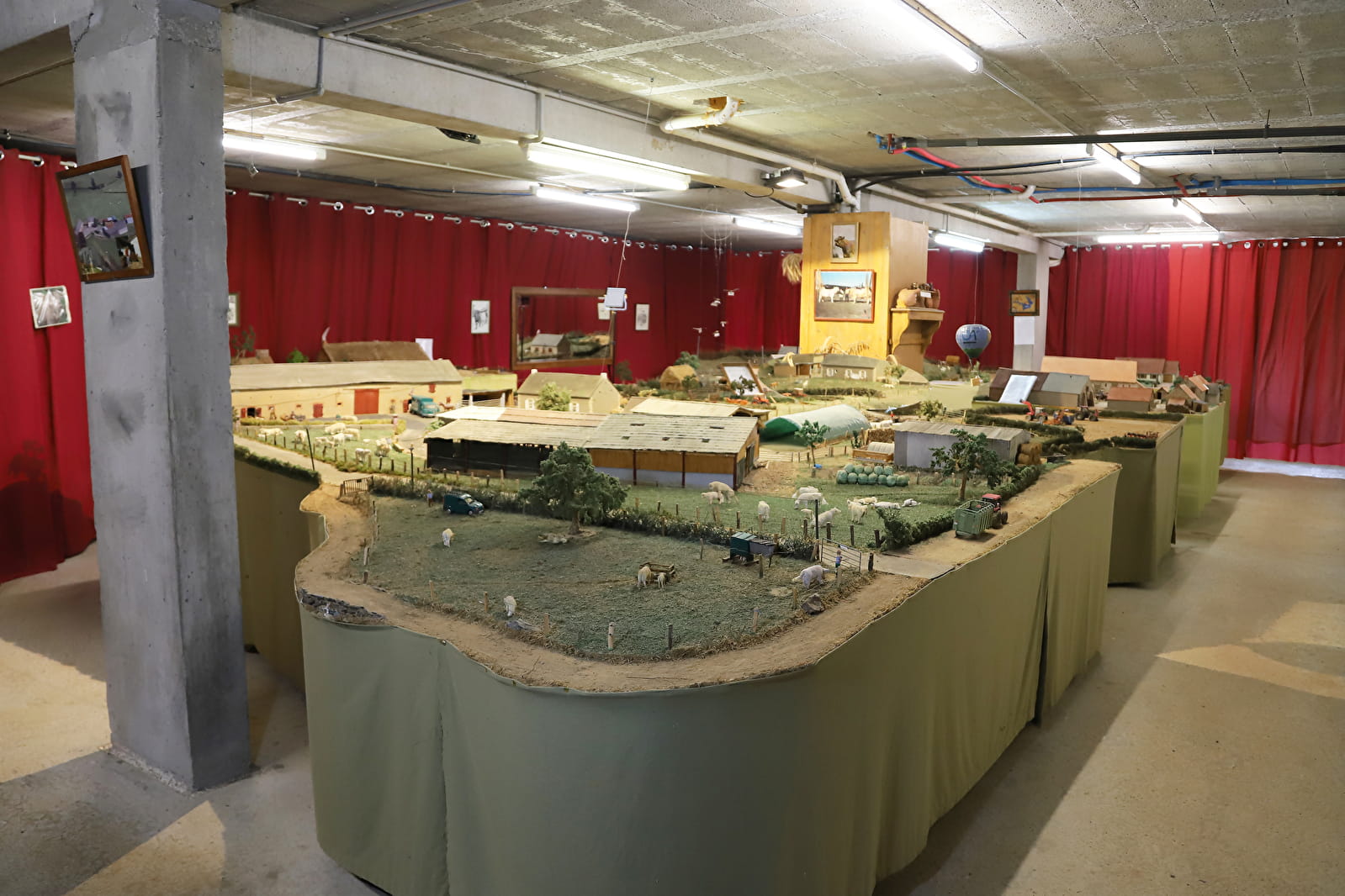 Avec quatre exploitations agricoles fidèlement miniaturisées au 1/32 ème, plus de trois cent personnages et animaux en bois sculpté, du matériel agricole de différentes époques reproduit en fer, le tout mis en scène avec beaucoup de réalisme et d’amour. Vous découvrirez dans un espace de 80m² toute l’évolution de l’agriculture de 1950 à l’an 2000.