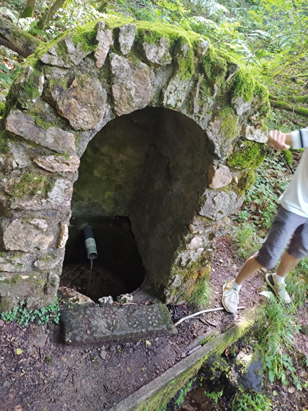 Fontaine qui reprend l'eau qui s'écoule de la Queudre, niché en contrebas de la route. On y accède dans un tournant après la Place au Charbon. Un escalier vous permet de descendre la voir. On dit que son eau est bonne mais elle n'a pas été testée par un organisme agréé. Nous ne pouvons donc pas vous conseiller de boire son eau. Un peu plus loin, vous trouverez une autre curiosité des alentours ; la pierre aigüe