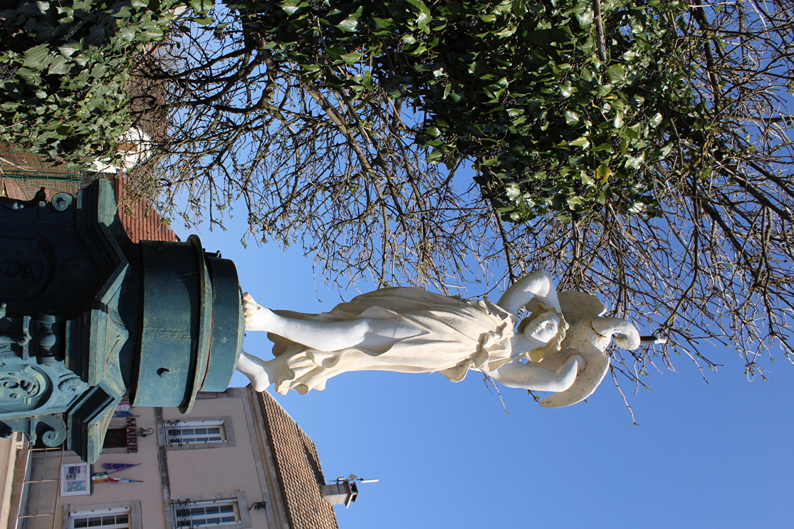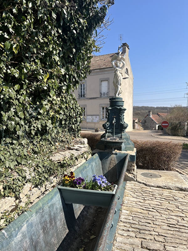 Agrémentée d'un long abreuvoir datant de 1903, la fontaine se situe au centre du village de Bouhey.