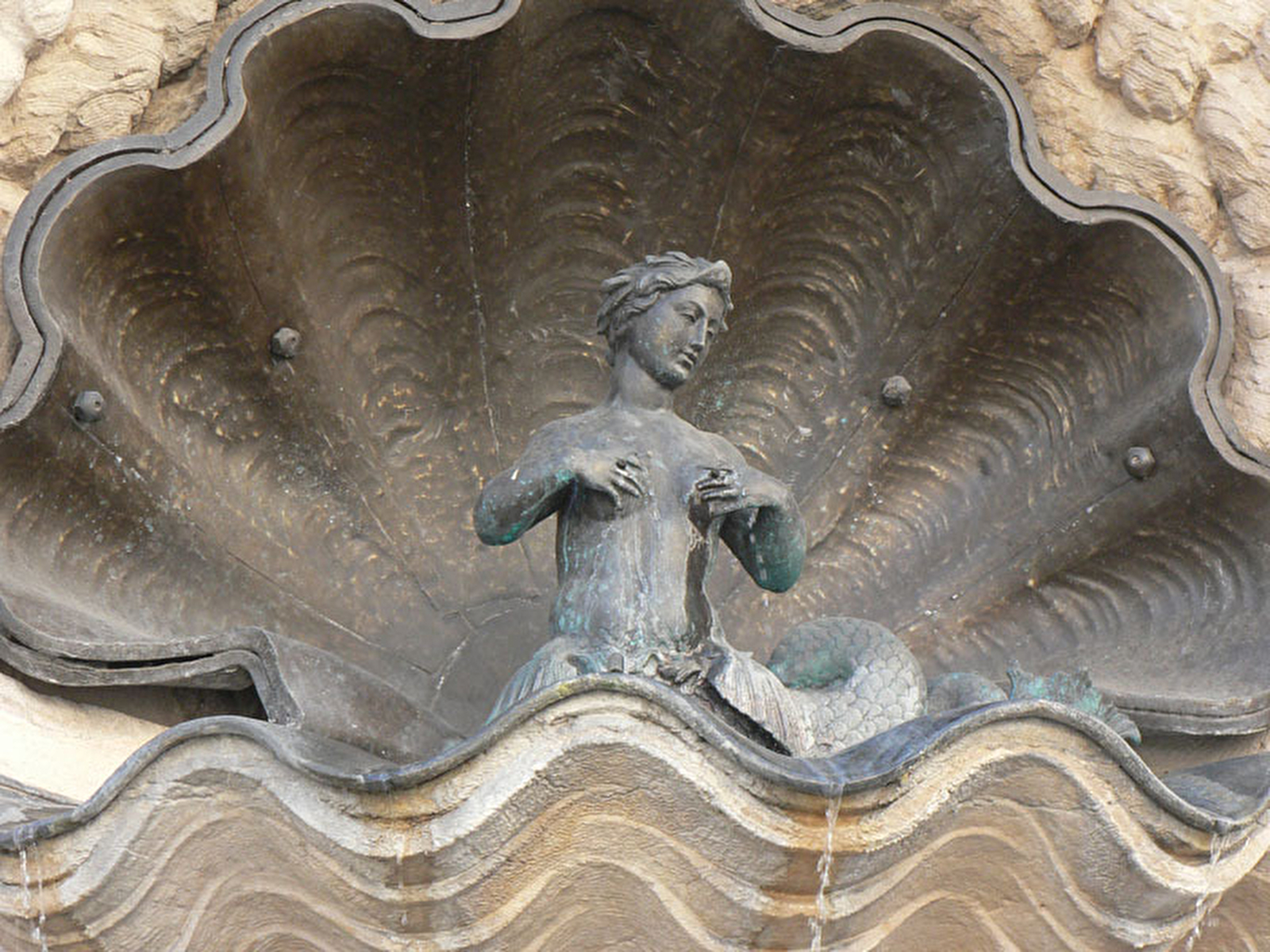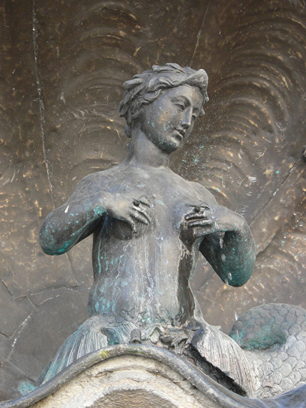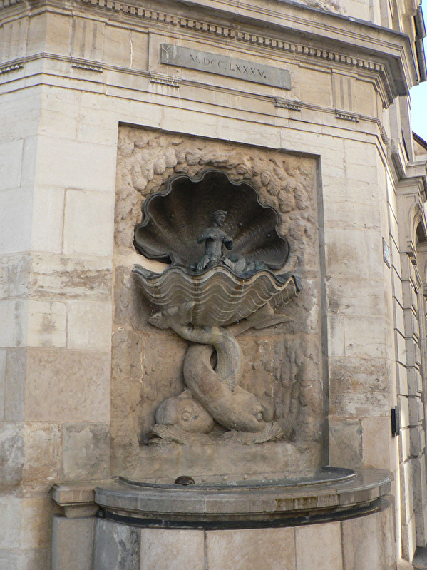A l’angle de la préfecture, la fontaine des Dames, édifiée en 1785 d’après les dessins de l’architecte Claude Joseph Bertrand, doit son décor au sculpteur Luc Breton. Dans une niche de pierre dont le traitement évoque des concrétions calcaires deux dauphins enlacés soutiennent un coquillage servant d’écrin à une petite sirène de bronze. Oeuvre du sculpteur Lulier, la petite sirène ornait au XVI siècle la cour intérieure du palais Granvelle.