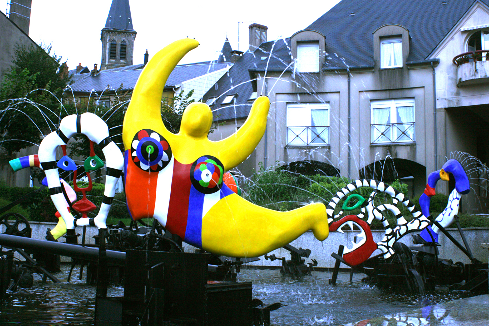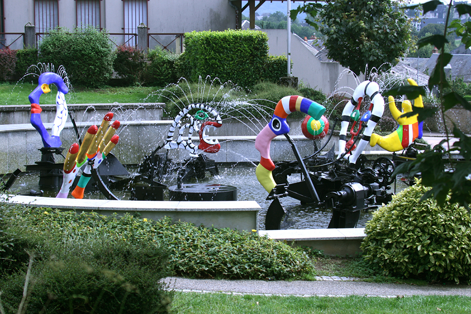 Installée devant l'ancien palais de Justice devenu mairie, la statue-fontaine-mobile est l’œuvre conjointe de Jean Tinguely et Niki de Saint-Phalle. Offerte par François Mitterrand à Château-Chinon, elle est remarquable d’abord parce qu’il en existe peu, cinq dans le monde, dont deux en France, ensuite parce qu’elle plaît par son mouvement, ses couleurs, très caractéristiques de Niki, vives, éclatantes, presque éblouissantes. C’est gai, étonnant, séduisant. C’est un clin d’œil que vous fait la ville.