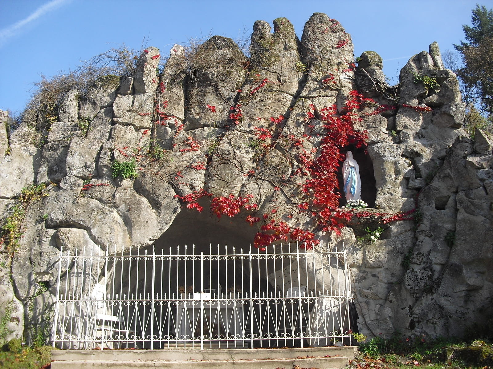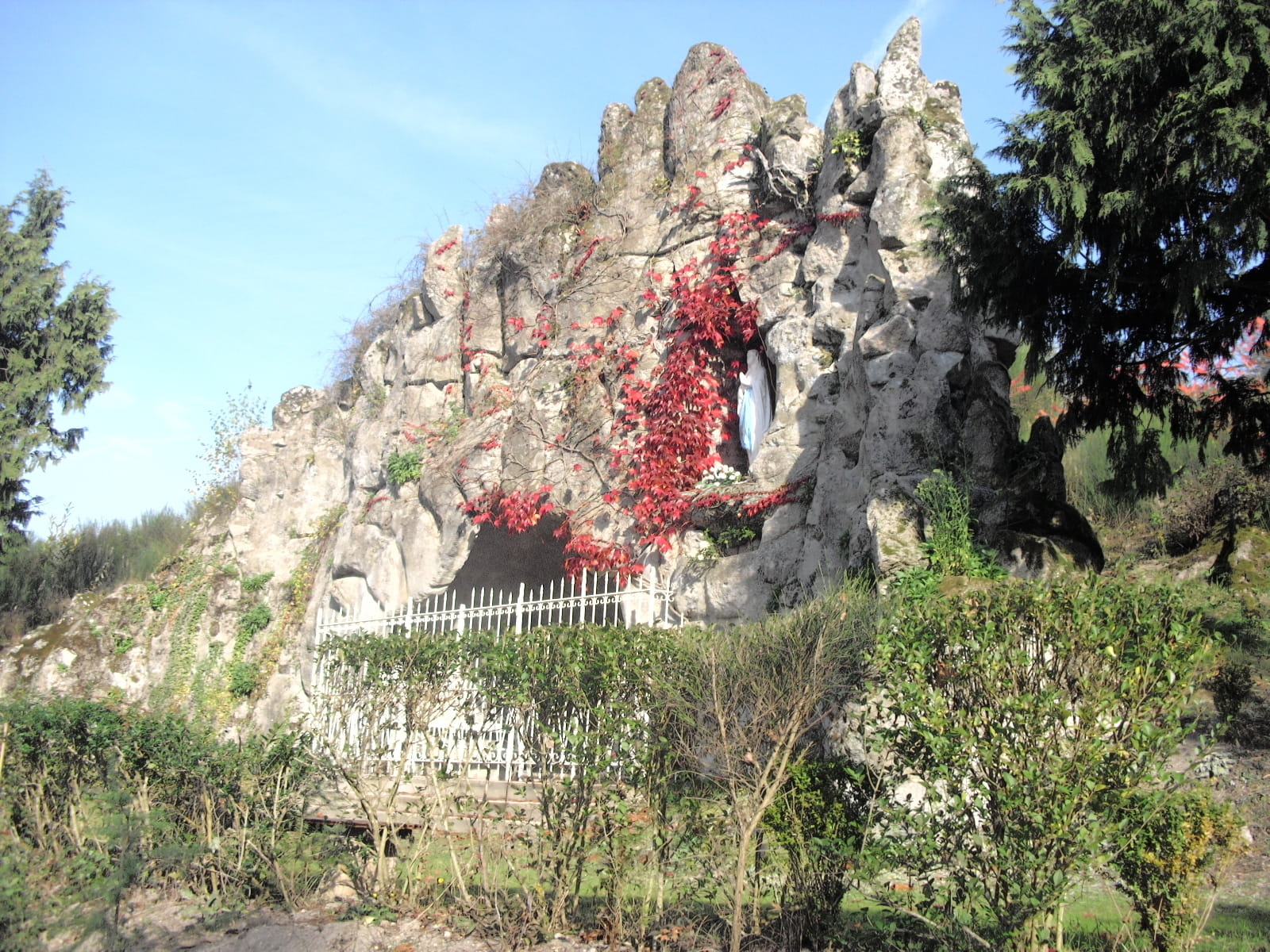 Il accueille une grotte, réplique de la grotte de Lourdes, un calvaire et un chemin de croix.