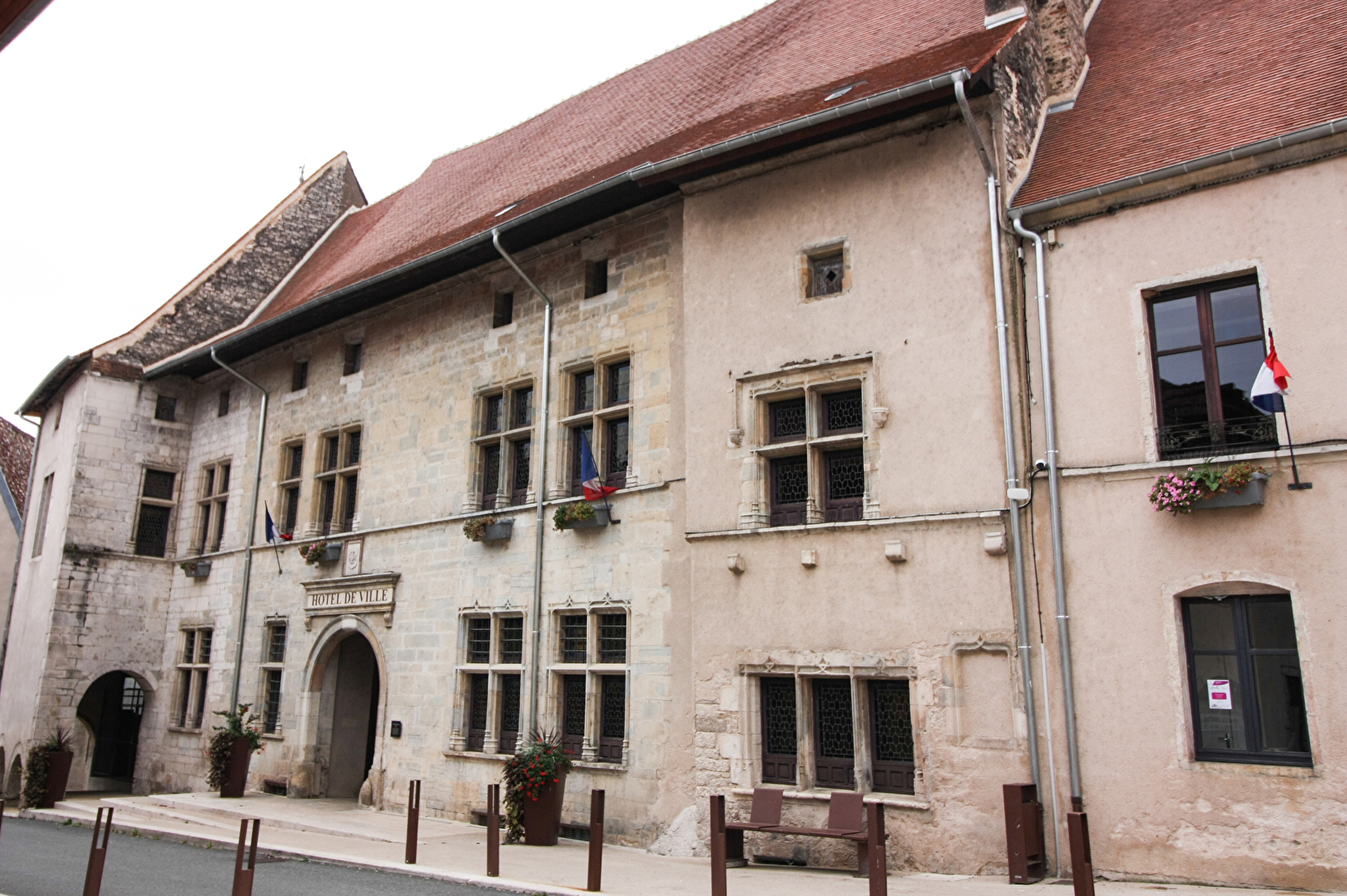 L'Hôtel de Santans, aujourd'hui Hôtel de Ville, est un bel exemple de l'architecture civile urbaine du XVIème siècle, où s'épanouit le style de la Renaissance. Sa large façade, en pierres calcaires ocres à veines bleutées, se caractérise par ses fenêtres à meneaux souvent jumelées par deux. L'encadrement de la fenêtre à l'étage, à droite, a conservé le blason des Santans. La porte en plein cintre surmontée d'une table soutenue par des consoles, rappelle l’entablement des temples antiques. Visite des extérieurs uniquement.
