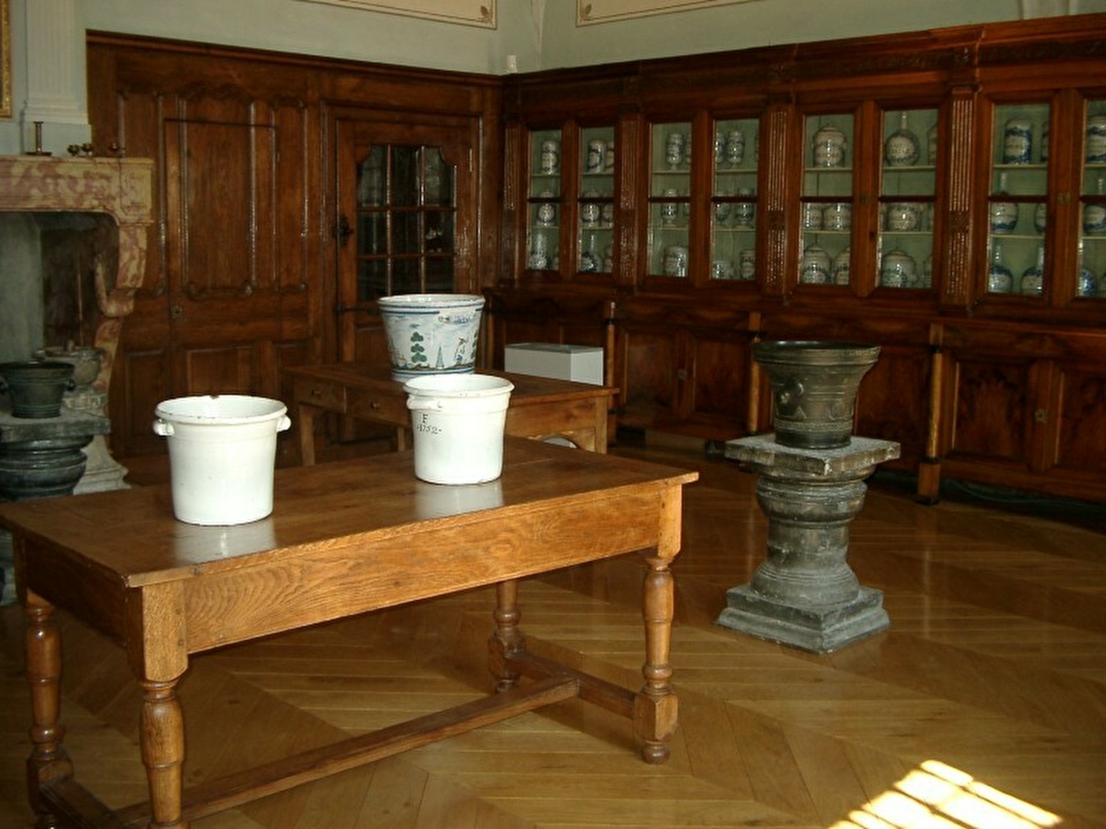 La façade sur le canal, très régulière, donne une impression de sévérité rigoureuse et de sobriété. Dans cette composition, ce sont les lignes horizontales qui dominent avec notamment l'énorme balcon qui barre l'ensemble de la façade. Ce balcon réserve des surprises à celui qui s'approche de l'édifice. En y regardant de plus près, il s'apercevra de l'étonnant foisonnement du décor sculpté qui envahit les consoles soutenant le balcon : Masques, fruits, fleurs, feuillages, motifs géométriques, mufles de lions, monstres ... composent un ensemble très varié. À l'une des extrémités du balcon a été construite en 1686 une magnifique tourelle en encorbellement.