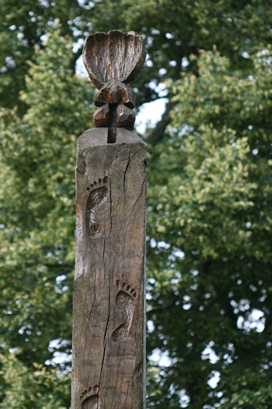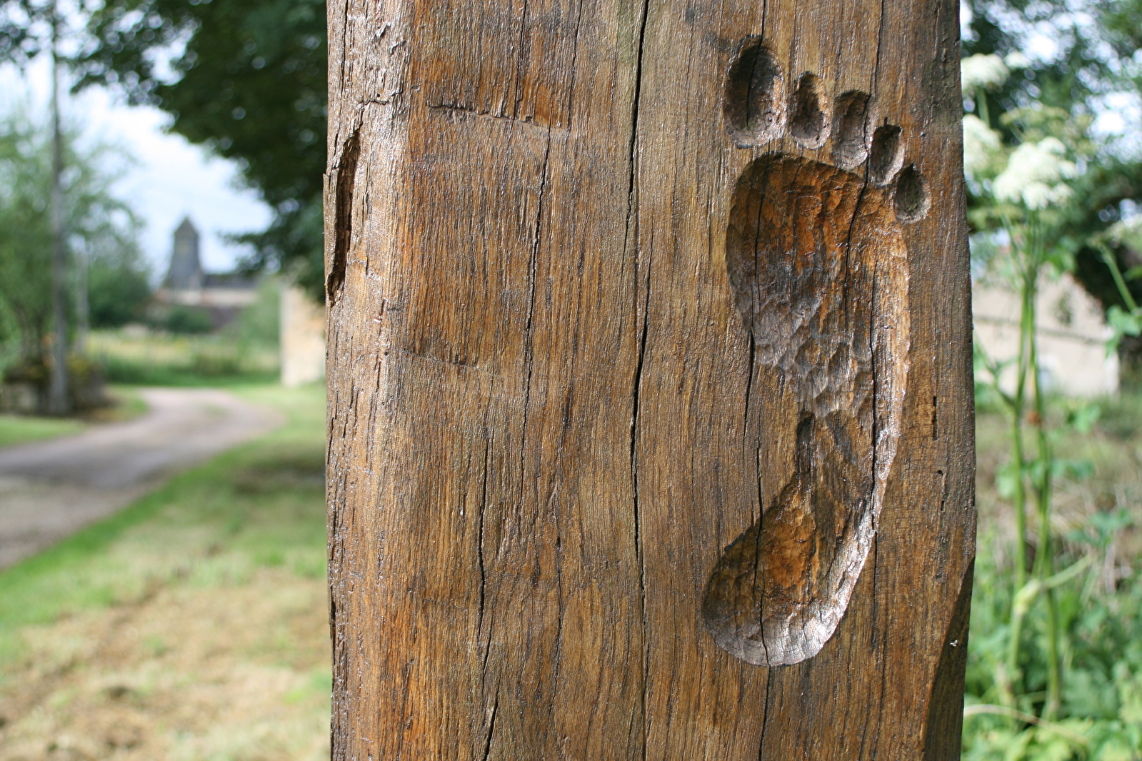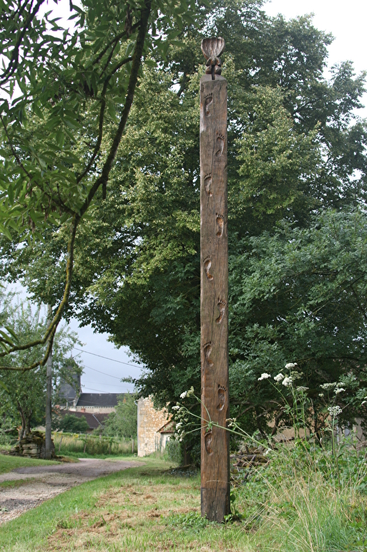 « La borne Saint-Jacques » posée là au bord du chemin de Saint-Jacques de Compostelle pour rappeler que le pèlerin chemine horizontalement mais aussi verticalement. C'est une réalisation de l’artiste plasticien François Davin et des habitants de Nannay.