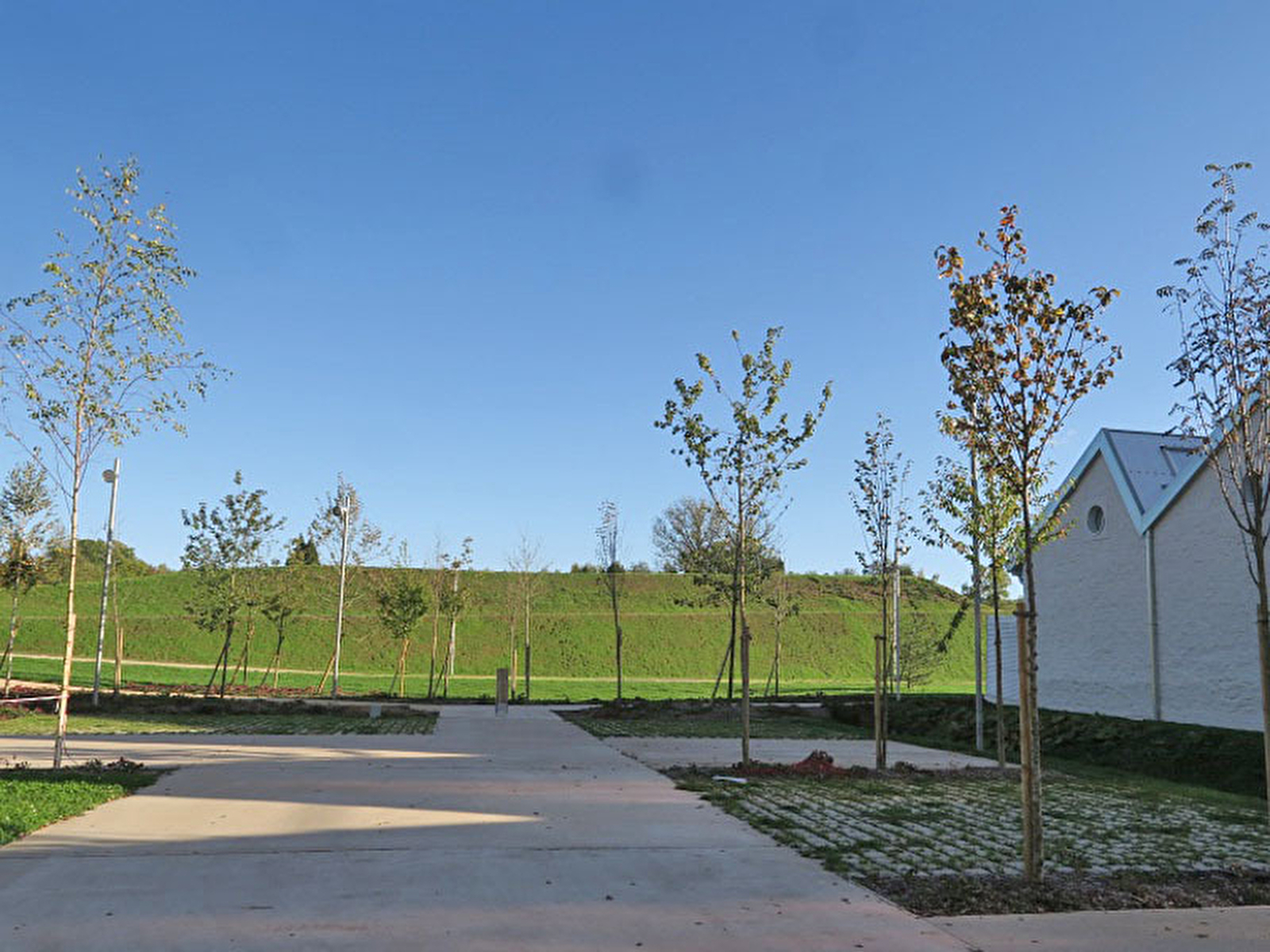 halle publique couverte et un belvédère offrant une vue sur la Chapelle de Ronchamp.