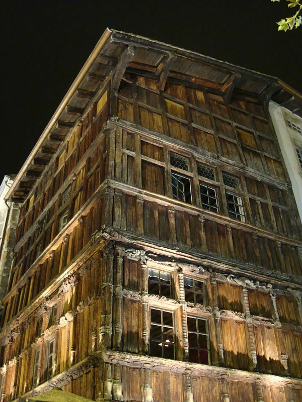 Construite entre 1490 et 1510, la Maison de Bois est sans doute la plus ancienne maison de Mâcon, et très certainement la plus célèbre. Sa façade entièrement construite en bois est décorée d’une multitude de statuettes d’inspiration souvent grivoise. Personnages à masques d’hommes et de singes plus ou moins grimaçants, ils sont debout, assis, ailés, nus ou parfois vêtus seulement d’une écharpe ou d’un bonnet.