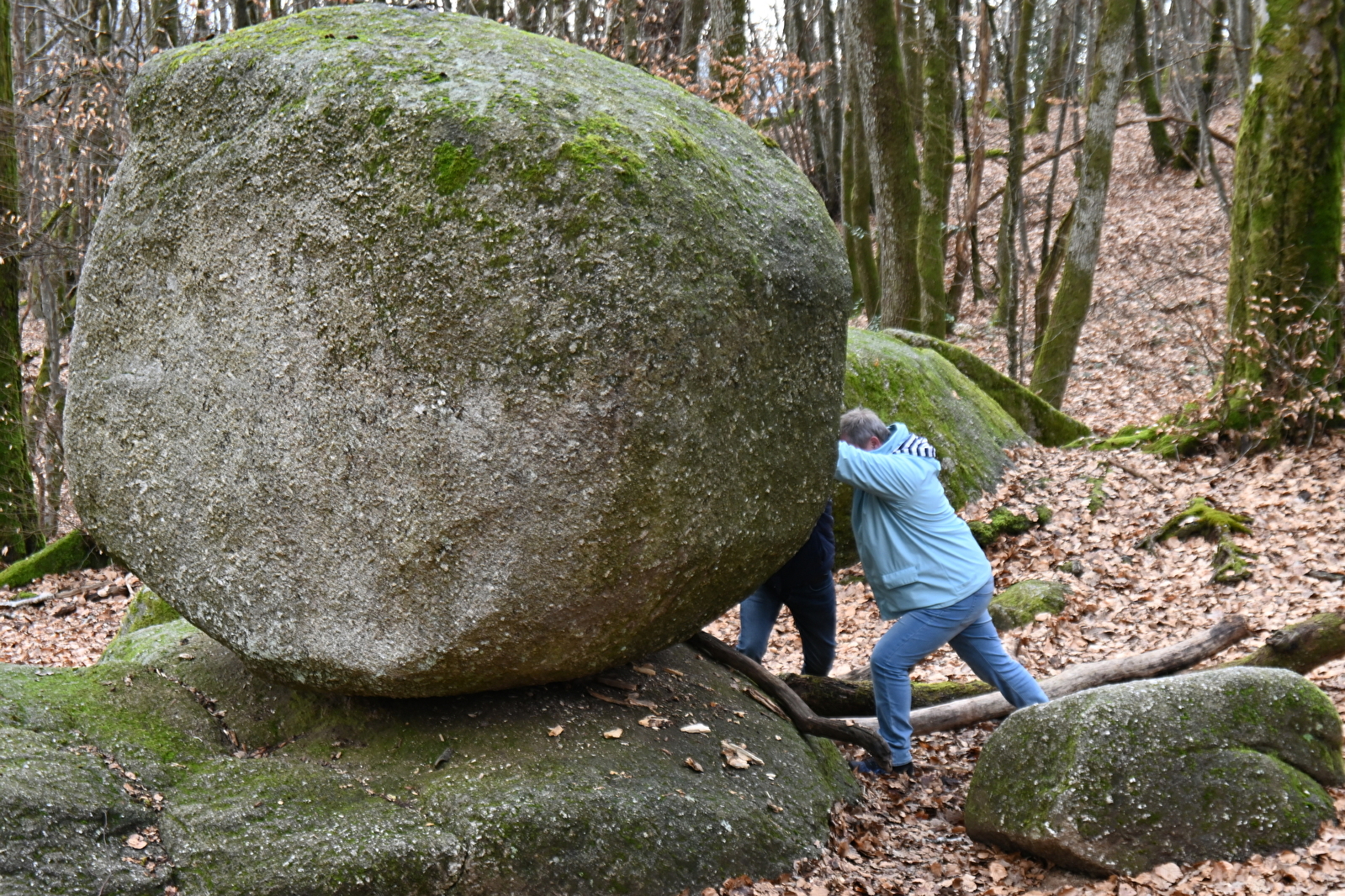 Ces énormes masses granitiques oscillent aujourd'hui encore entre légendes et preuves scientifiques. Le "gros caillou" de 47 tonnes est toujours un mystère que chacun essaie de faire "crouler". Au milieu du XIXe siècle, la Pierre qui croule suscitait curiosité, mystère et divertissement. Pour les habitants, cette pierre relevait du surnaturel. Elle était consultée comme un oracle et ces derniers avaient fini par la transformer en juge spécialiste de la fidélité conjugale. Il est dit que les maris jaloux y amenaient leurs femmes, leur laissaient toucher la pierre et ainsi la mettre en mouvement. Le nombre de mouvements donnait alors, et sans erreurs possibles, félicité ou disgrâce à l'époux qui se questionnait sur la fidélité de sa femme. Lassés des malheurs que la pierre pouvait causer, des jeunes gens ont essayé en 1869 de la déplacer. Ils ne réussirent qu'à la faire glisser de quelques centimètres. Mais désormais, la pierre est parfaitement immobile et l'oracle ne répond plus.