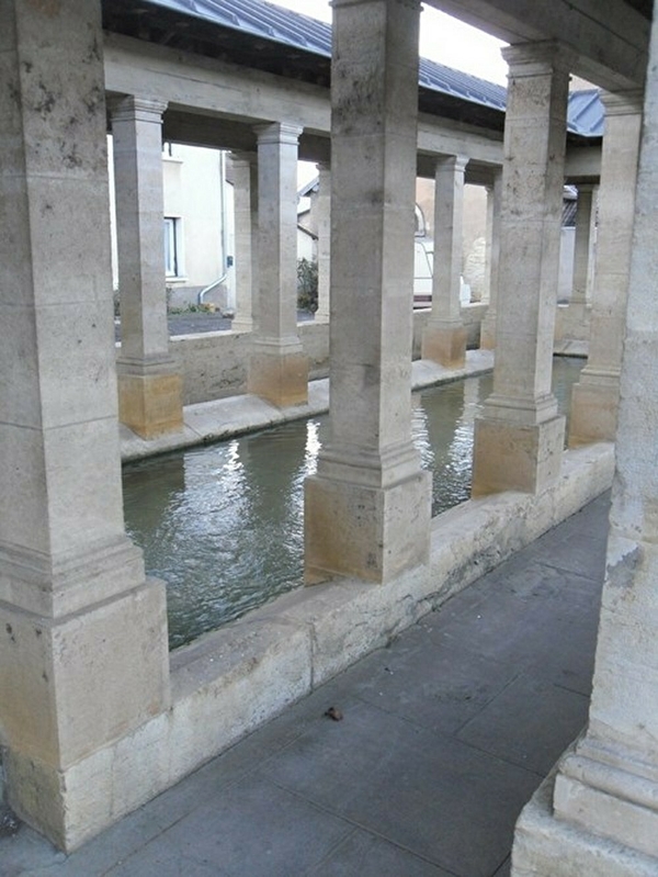 Construite au XIXè siècle, et de style néo-classique, la fontaine-lavoir classée aux Monuments Historiques, d'aspect temple antique, comporte un lavoir, rectangulaire et rappelle une villa romaine. Construite au bord de la départementale et bien rénovée, elle attire tout de suite le regard, suivie qu'elle est par un lavoir plus traditionnel à la sortie du village. Ce peut être le début d'un circuit des fontaines et lavoirs en voiture, ou bien en vélo, et un but de visite pour petits et grands.
