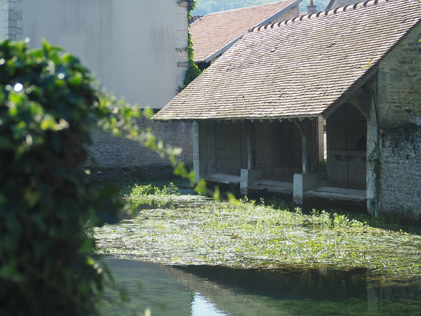 Villecomte apparaît pour la première fois en 1004 sous le nom de « Villa Comitis ». C’est la maison de campagne des comtes de Saulx. Durant la Révolution, Villecomte prit le nom de Belle Fontaine afin d’ôter la connotation de « comté ». Du parking, on peut apercevoir un lavoir qui possède une particularité... Pour l’expliquer, revenons un peu en arrière… En 1846, un architecte dijonnais est choisi par la municipalité pour construire le lavoir de Villecomte. Celui-ci choisit une situation géographique du lavoir qui a tout d’abord fait plusieurs mécontents, car l’eau du lavoir souillée par la lessive allait directement dans l’abreuvoir situé à proximité. L’architecte décide ensuite de couvrir le lavoir avec un toit de laves et fera construire deux niveaux de pierres inclinées pour battre le linge. Dès 1878, le toit de laves menace de s’effondrer, les laves seront donc remplacées par des tuiles. Les deux niveaux de pierre à laver n’étant pas appropriés aux variations de l’eau, c’est un plancher mobile qui sera installé pour suivre de façon continue le niveau de l’eau. Car l’eau varie en fonction de l’activité du moulin situé à proximité. Ce plancher est donc suspendu par des tiges métalliques à un axe muni de roues lui-même accroché à la charpente du lavoir. Au mur du fond est fixé un treuil sur lequel sont enroulées des chaînes, ce qui permet de faire monter ou de faire descendre le plancher. En 1914, des soldats installent leur cuisine dans le lavoir, le mécanisme étant utilisé sans modération, les engrenages finissent par se briser. Ce n’est qu’en 1994 que le lavoir est restauré. En montant, prenez le temps de vous retourner, vous apercevrez le village perché de Saulx-le-Duc.