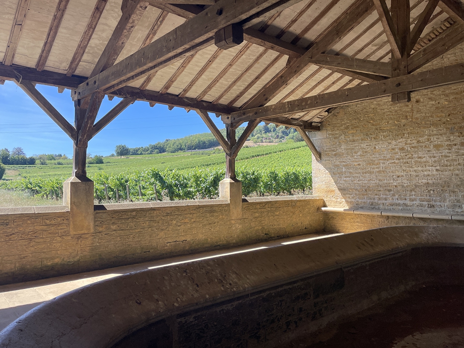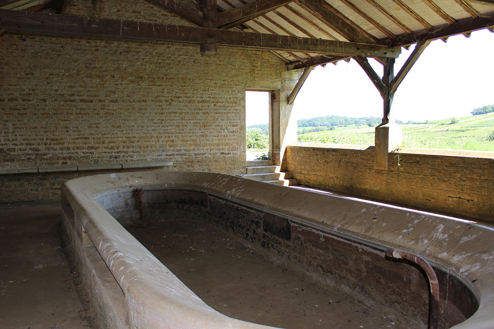 Joli lavoir en pierres taillées, au pied des vignes de la Côte Chalonnaise.