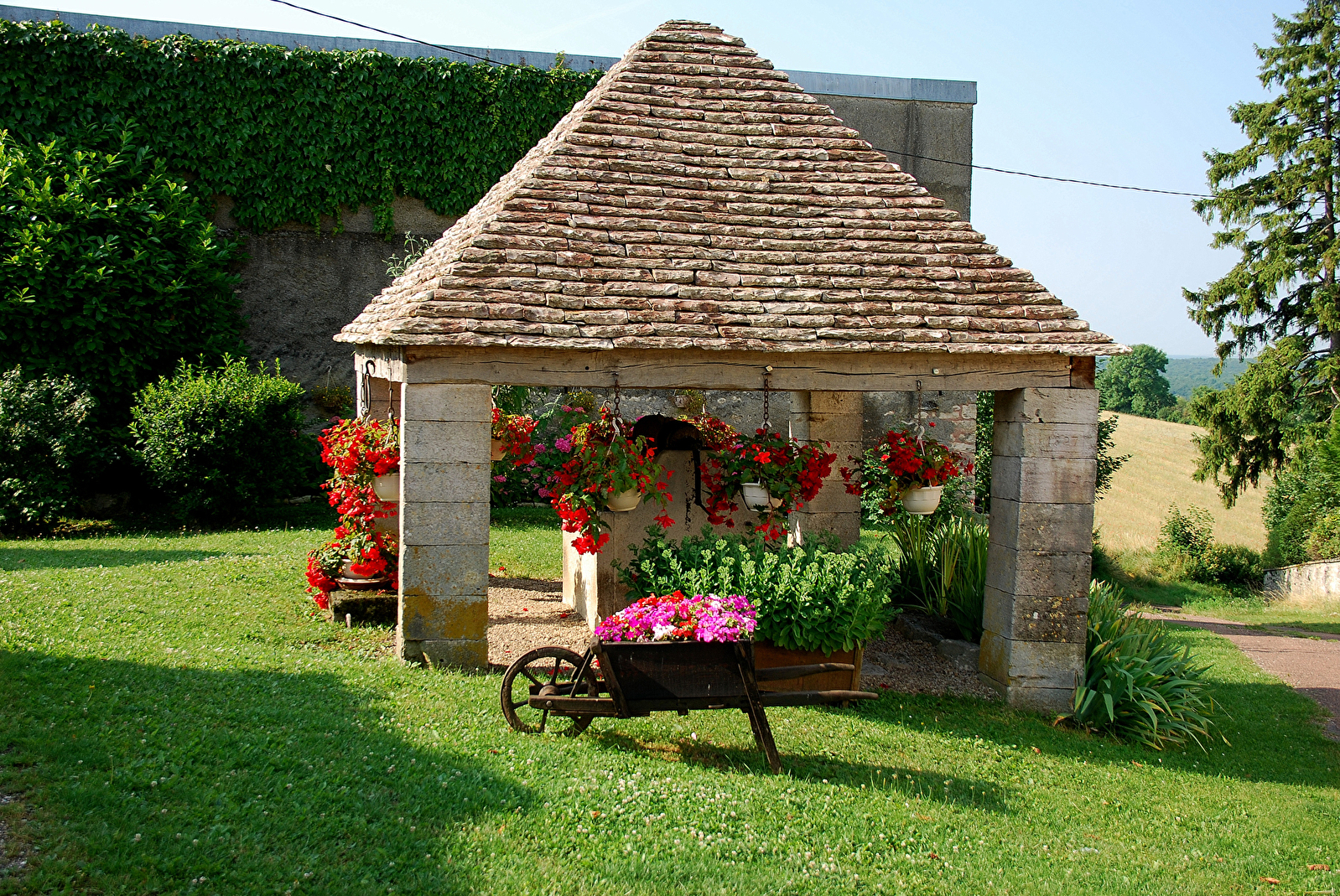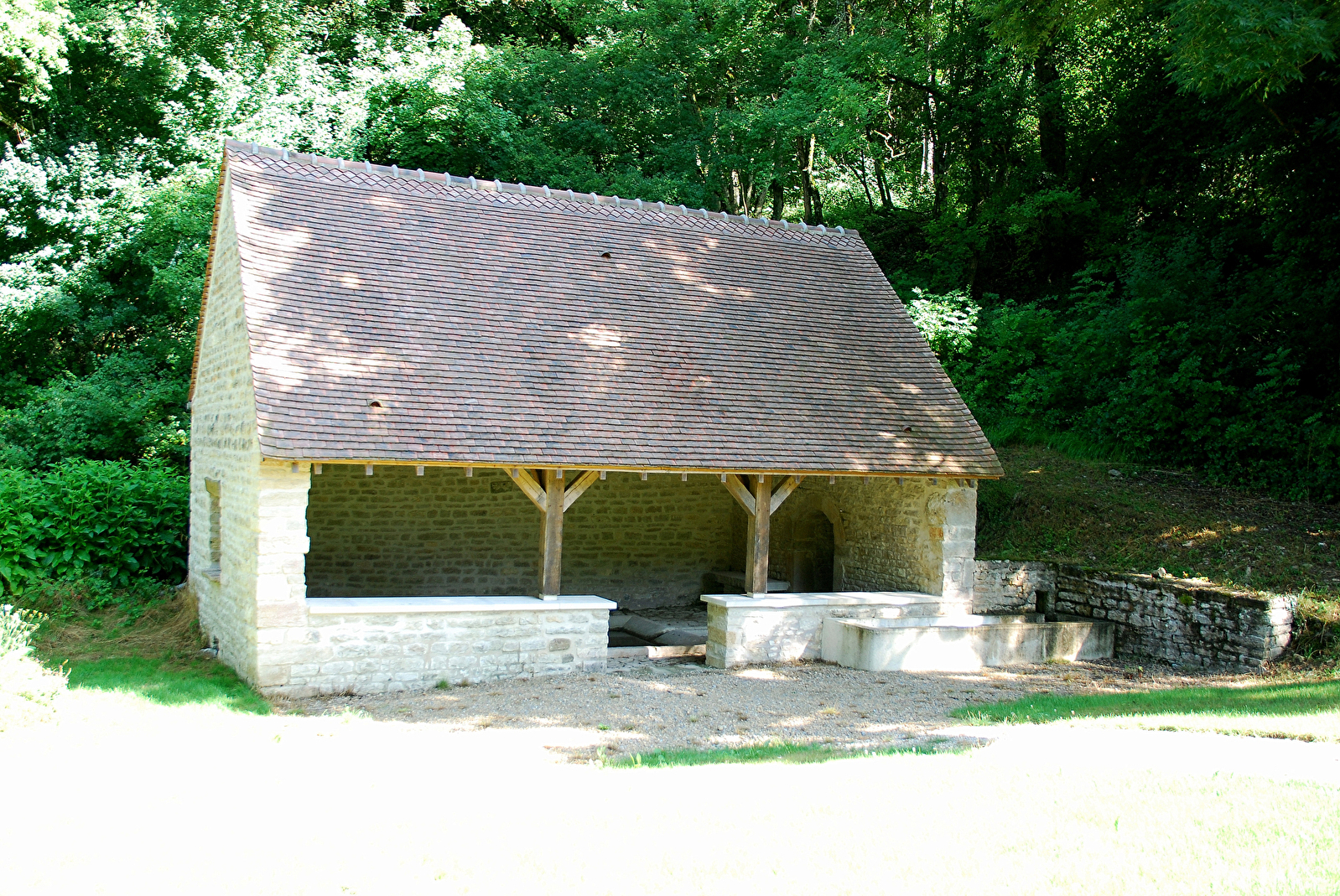 Joli lavoir restauré, pour le plaisir des promeneurs, ce lavoir, construit au XIXème siècle, occupait une place importante dans la vie du village. De par son emplacement, la remontée au domicile avec les brouettes de linges mouillés devait demander de gros efforts. Si vous remontez la petite route, un curieux puits couvert et un four à pain se trouvent au centre de ce hameau culminant à 570m.