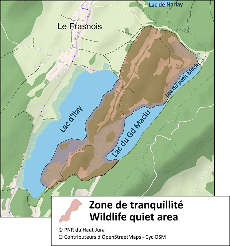 Site remarquable, classé Natura 2000 et site Ramsar « Tourbières et lacs de la montagne jurassienne », le site des 4 lacs accueille de très nombreux visiteurs. Pour préserver l’équilibre du site et ses patrimoines naturels, une zone de tranquillité volontaire est instaurée du 15 avril au 15 septembre (en marron sur la carte). Elle permet de limiter le dérangement des espèces animales en période de reproduction et d’élevage des jeunes, d’empêcher le piétinement, et de préserver la quiétude des différents milieux naturels.