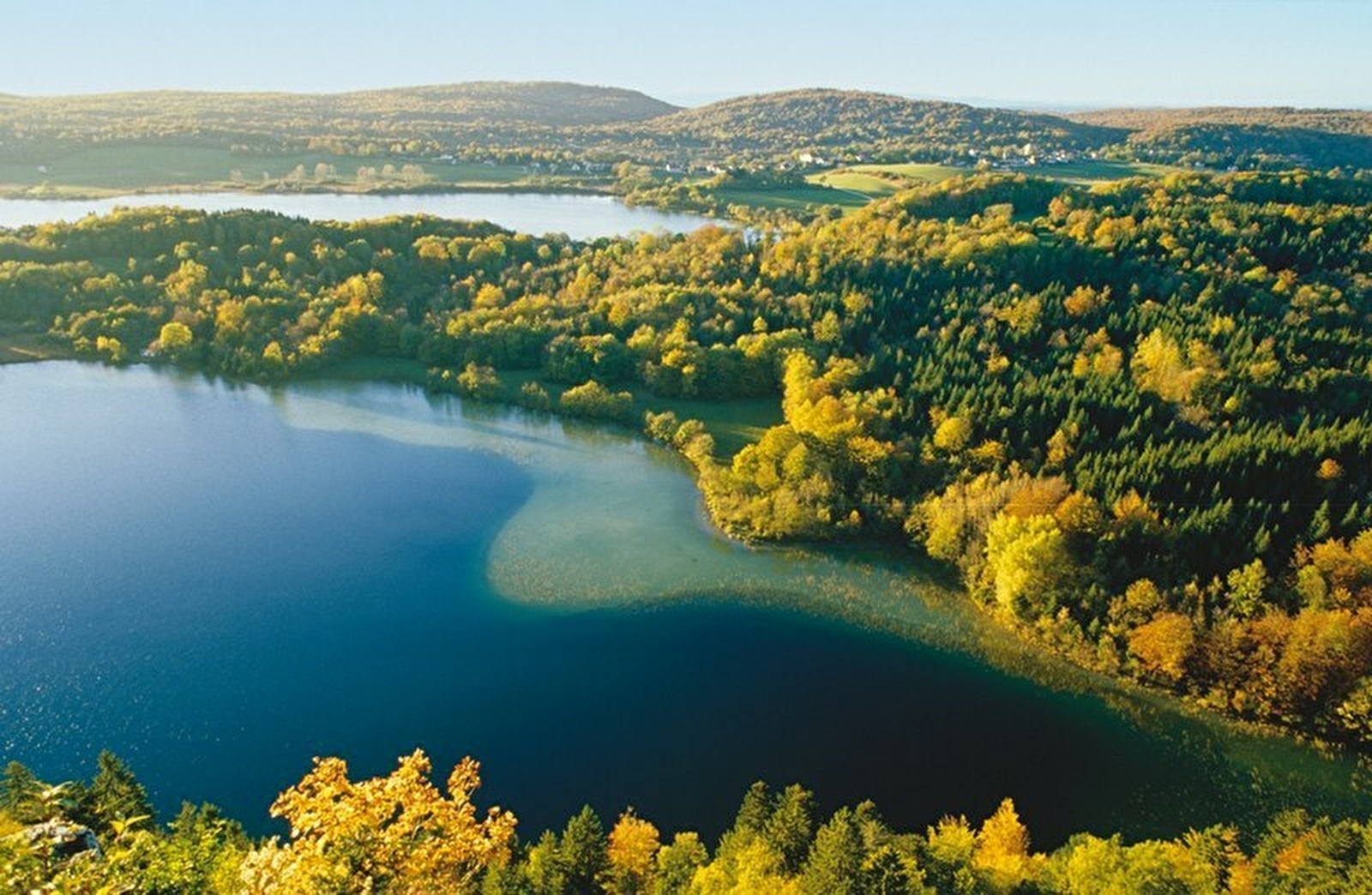 Dominé par le Pic de l'Aigle, un crêt culminant à 993 mètres, ce site offre un panorama spectaculaire à 360° sur le plateau des 4 lacs et les montagnes du Jura. À quelques centaines de mètres du Pic de l’Aigle, le Belvédère des 4 lacs, accessible à pied ou en voiture, est un autre point de vue incontournable pour admirer l'ensemble du paysage.