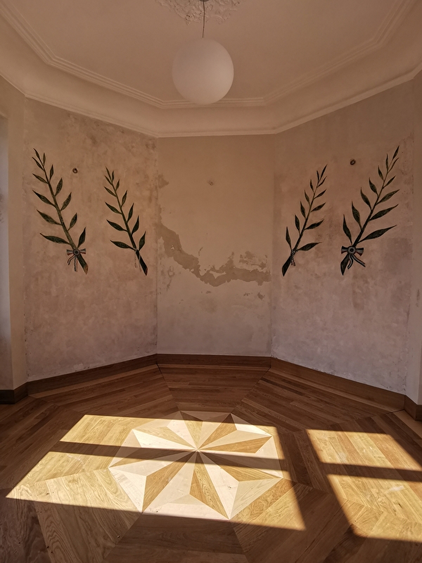 Lors de la rénovation des murs intérieurs du kiosque, d'anciennes peintures murales ont été découvertes. Elles représentent deux paires de palmes de la Légion d’honneur, nouées par des cocardes républicaines, réparties symétriquement sur les deux parements démunis de fenêtres. Ces peintures ont été rénovées par Anne Gérard-Bendele, restauratrice, diplômée de l’INP-IFROA (Institut national du patrimoine - Institut français de restauration des œuvres d’art).