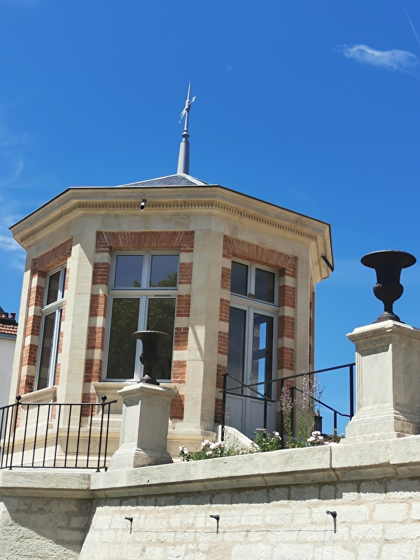 La roseraie et son kiosque faisaient partie du Château. Ce dernier est aujourd'hui devenu le siège de la communauté de communes.