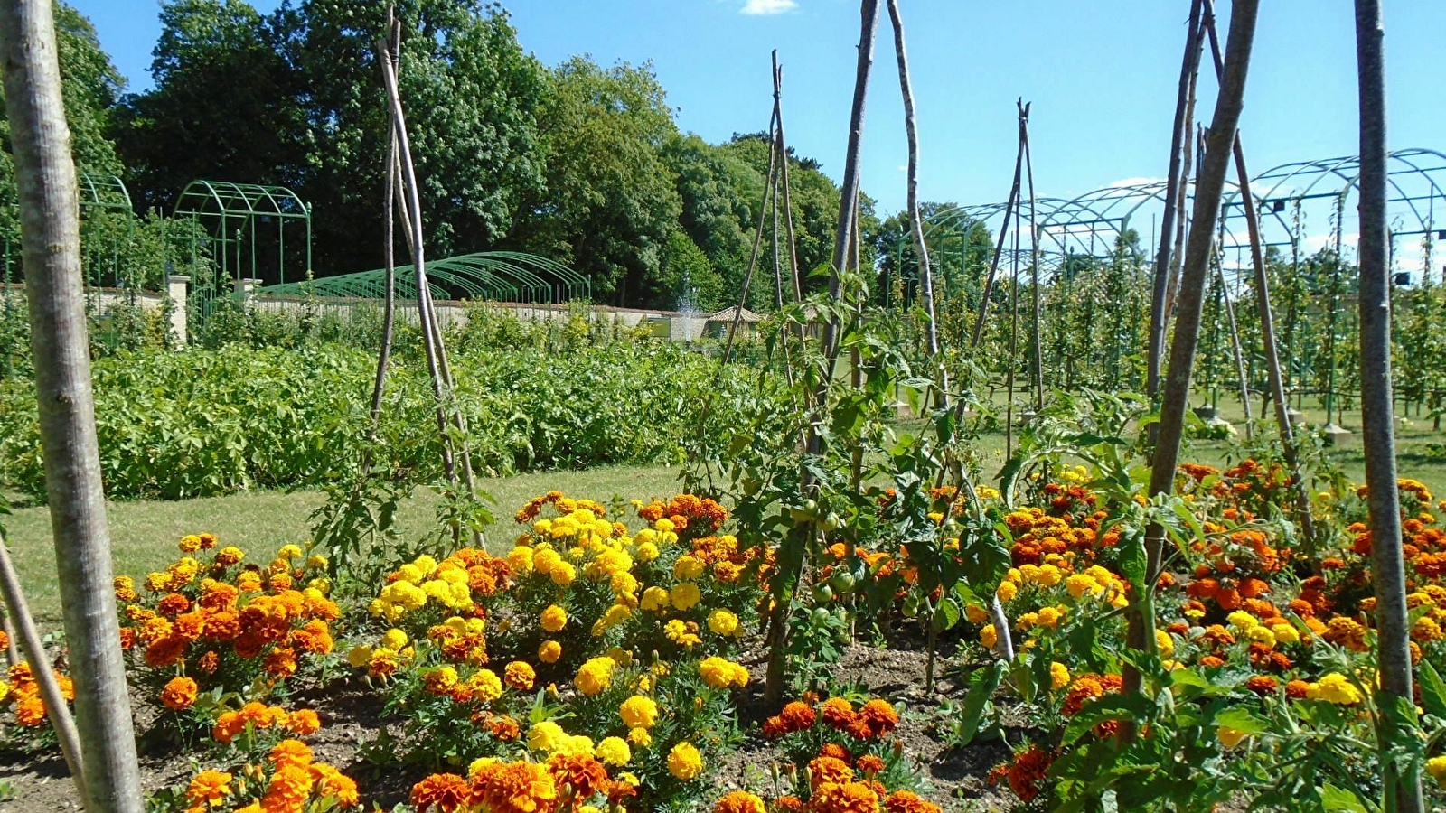 Comme toute demeure aristocratique, le château de Montigny-sur-Aube s’est doté au XIXe siècle d’un superbe verger-potager de 5 244 m² clos de murs – véritable jardin vivrier – où plusieurs centaines de variétés fruitières, en espaliers aux formes diverses ou en contre-espaliers, couvrent de façon savante tous les murs de 3,60 m de hauteur et les arceaux en ferronnerie. Au centre d’une croix d’allées se dressent le bassin du jardinier et sa belle fontaine Renaissance et, devant le jardin des mellifères, un superbe rucher de style XIXe où s’affairent les abeilles pollinisatrices des lieux. Quant aux jardins de légumes, vous y découvrirez, en saison, plus d’une centaine de variétés de tomates en tipi au milieu de carrés d’œillets d’Inde. Dans le jardin des châssis, toute une collection de plantes aromatiques approvisionne la cuisine de la ferme-auberge de saveurs incomparables. Quant aux jardins des fruits rouges, au milieu des pruniers en quart-de-tige, vous y découvrirez muriers, framboisiers bien domptés dans leur casier de ferronnerie. Tout un savoir-faire du XIXe siècle que l’équipe des jardiniers tente de perpétuer avec passion et expertise et qui vous est conté, au fil de votre visite, grâce à l’audioguide. Même une maquette située à l’arrière du rucher vous en expose les principes. À certaines périodes, ce lieu unique est aussi celui de la formation à la taille et à la greffe fruitière ou au bouturage, destinée au grand public (sur inscription).