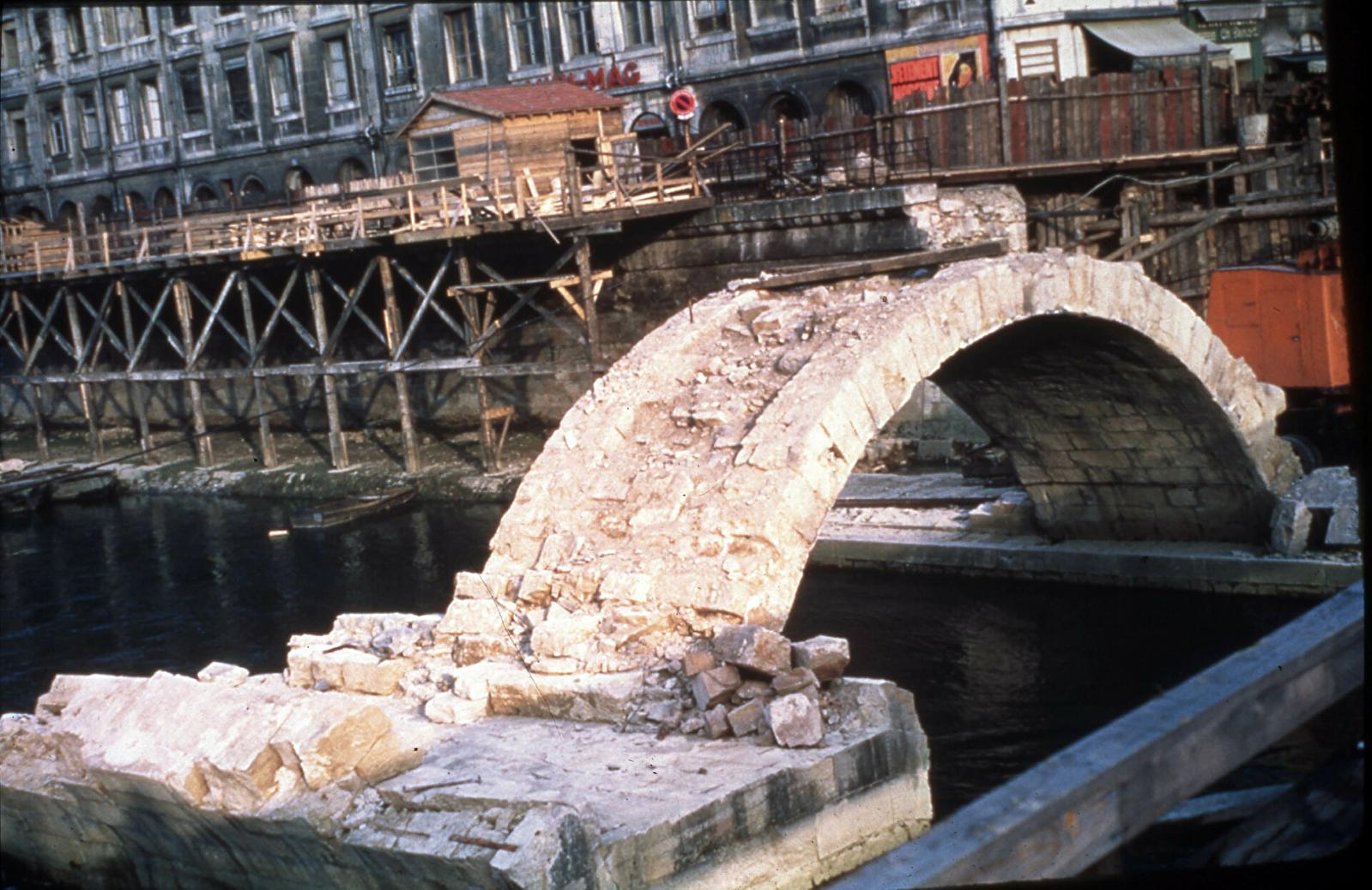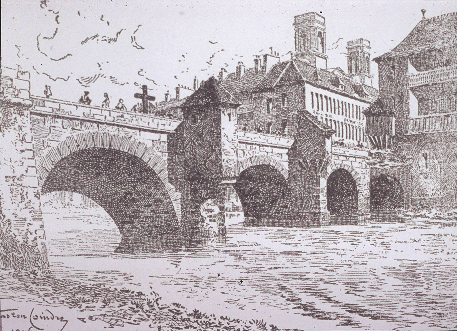 Sous l'actuel Pont Battant subsiste la base d'une pile de l'ancien pont construit par les Romains, détruit en 1953, le pont antique était composé de 5 arches. Les piles étaient formées de blocs de pierre en forme de polygone, reliés par des crampons de fer scellés au plomb.
