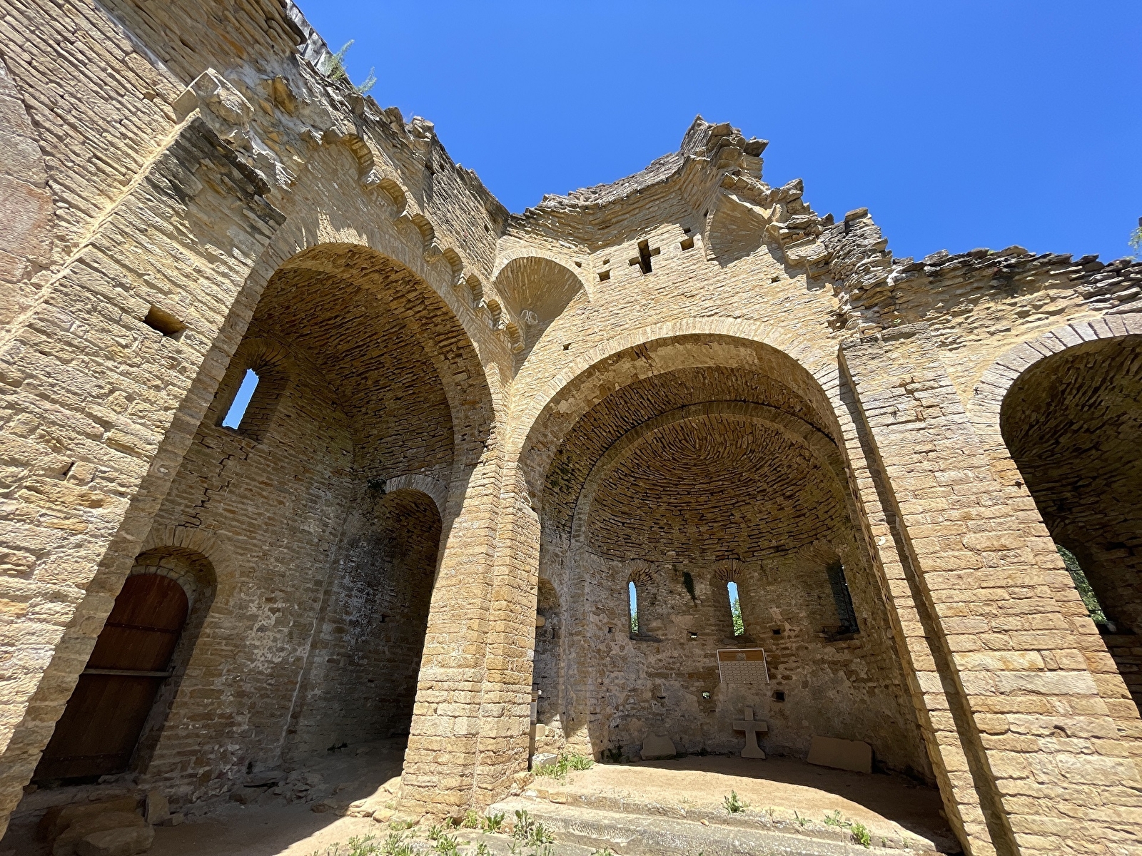 L’église, classée Monument Historique en 1973, est presque entièrement à ciel ouvert. Seul le bas-côté Nord est couvert, tandis que les absides et les absidioles sont intactes.