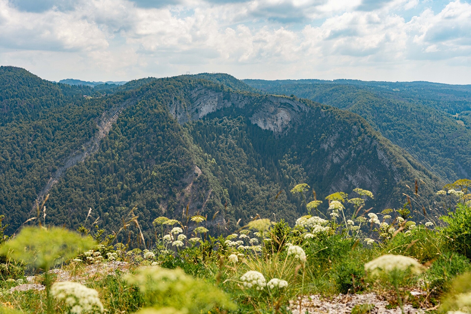 Les Grès de Septmoncel, site classé avec arrêté de protection de biotope, domine la vallée et les gorges du Flumen. Il témoigne de l’activité tectonique qui a formé la chaîne jurassienne et offre un beau panorama sur les reliefs alentours. Pour observer ses plis caractéristiques, le belvédère de la Roche Blanche est le lieu idéal !