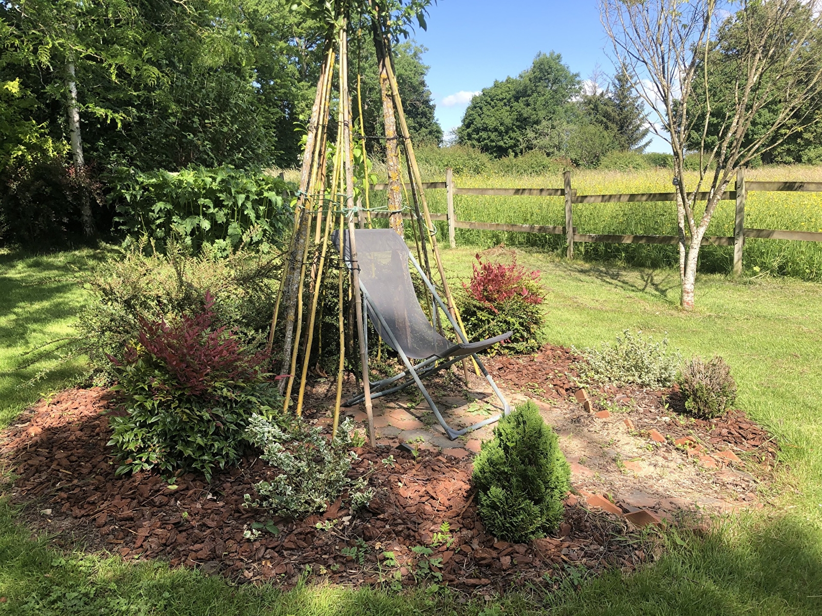 Situés au coeur du village, les jardins de Baloo s'ordonnent en 3 ensembles : un jardin d'agrément fleuri autour de la maison d'habitation, un jardin potager et un verger cultivés bio ainsi qu'un parc arboré planté de quelques spécimens remarquables pour méditer à ciel ouvert.