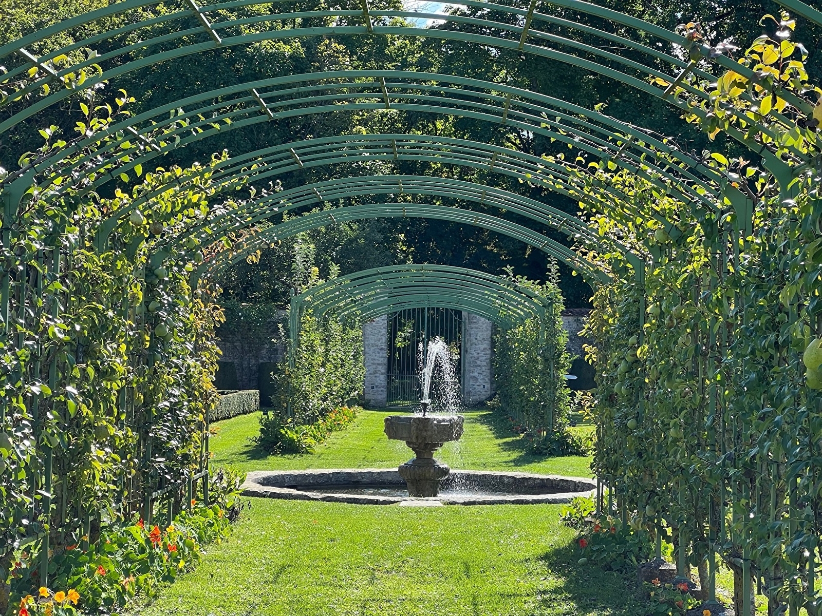 Comme toute demeure aristocratique, le château de Montigny-sur-Aube s’est doté au XIXe siècle d’un superbe verger-potager de 5 244 m² clos de murs – véritable jardin vivrier – où plusieurs centaines de variétés fruitières, en espaliers aux formes diverses ou en contre-espaliers, couvrent de façon savante tous les murs de 3,60 m de hauteur et les arceaux en ferronnerie. Au centre d’une croix d’allées se dressent le bassin du jardinier et sa belle fontaine Renaissance et, devant le jardin des mellifères, un superbe rucher de style XIXe où s’affairent les abeilles pollinisatrices des lieux. Quant aux jardins de légumes, vous y découvrirez, en saison, plus d’une centaine de variétés de tomates en tipi au milieu de carrés d’œillets d’Inde. Dans le jardin des châssis, toute une collection de plantes aromatiques approvisionne la cuisine de la ferme-auberge de saveurs incomparables. Quant aux jardins des fruits rouges, au milieu des pruniers en quart-de-tige, vous y découvrirez muriers, framboisiers bien domptés dans leur casier de ferronnerie. Tout un savoir-faire du XIXe siècle que l’équipe des jardiniers tente de perpétuer avec passion et expertise et qui vous est conté, au fil de votre visite, grâce à l’audioguide. Même une maquette située à l’arrière du rucher vous en expose les principes. À certaines périodes, ce lieu unique est aussi celui de la formation à la taille et à la greffe fruitière ou au bouturage, destinée au grand public (sur inscription).