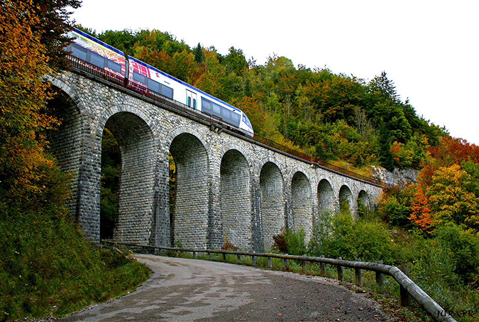 Le long de ses 123 km vous découvrirez la variété des paysages jurassiens, ainsi que ses viaducs et tunnels, ouvrages d’art symboles de prouesse technique et véritable témoignage d’une aventure humaine du début du siècle dernier !