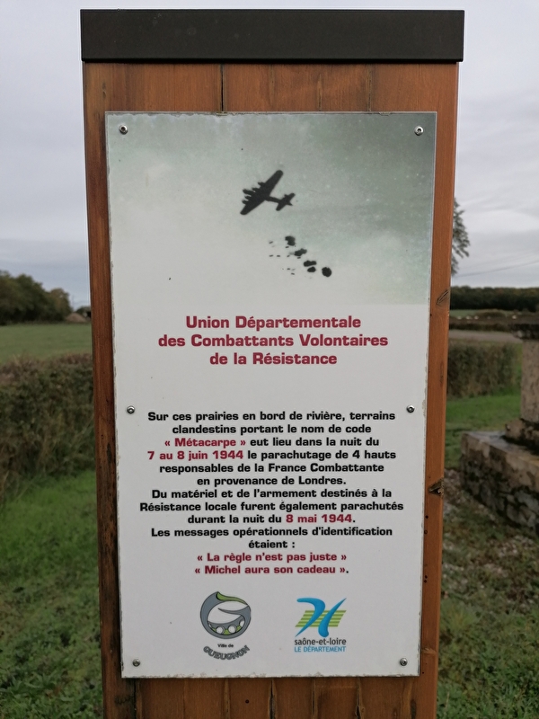 Les Combattants Volontaires de la Résistance (CVR) de Saône-et-Loire ont impulsé, depuis 2011, un projet de matérialisation des anciens lieux de parachutages de la Seconde Guerre mondiale pour rendre hommage à des hommes et des femmes engagés, prenant des risques importants, pour poursuivre la lutte contre l'ennemi.