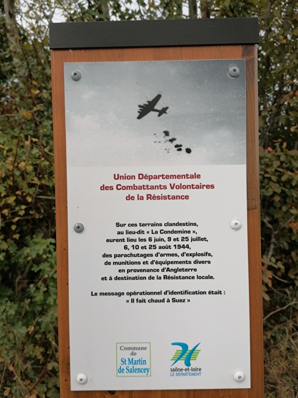 Les Combattants Volontaires de la Résistance (CVR) de Saône-et-Loire ont impulsé, depuis 2011, un projet de matérialisation des anciens lieux de parachutages de la Seconde Guerre mondiale pour rendre hommage à des hommes et des femmes engagés, prenant des risques importants, pour poursuivre la lutte contre l'ennemi.