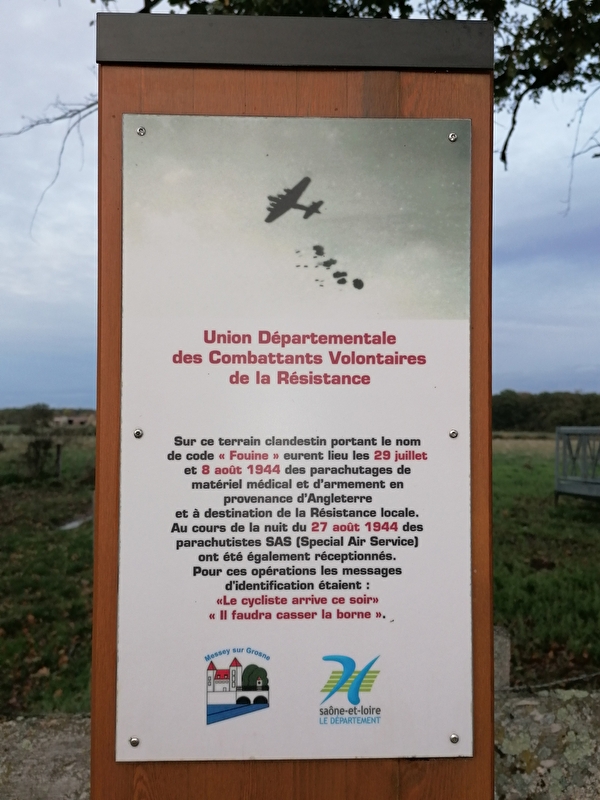 Les Combattants Volontaires de la Résistance (CVR) de Saône-et-Loire ont impulsé, depuis 2011, un projet de matérialisation des anciens lieux de parachutages de la Seconde Guerre mondiale pour rendre hommage à des hommes et des femmes engagés, prenant des risques importants, pour poursuivre la lutte contre l'ennemi.