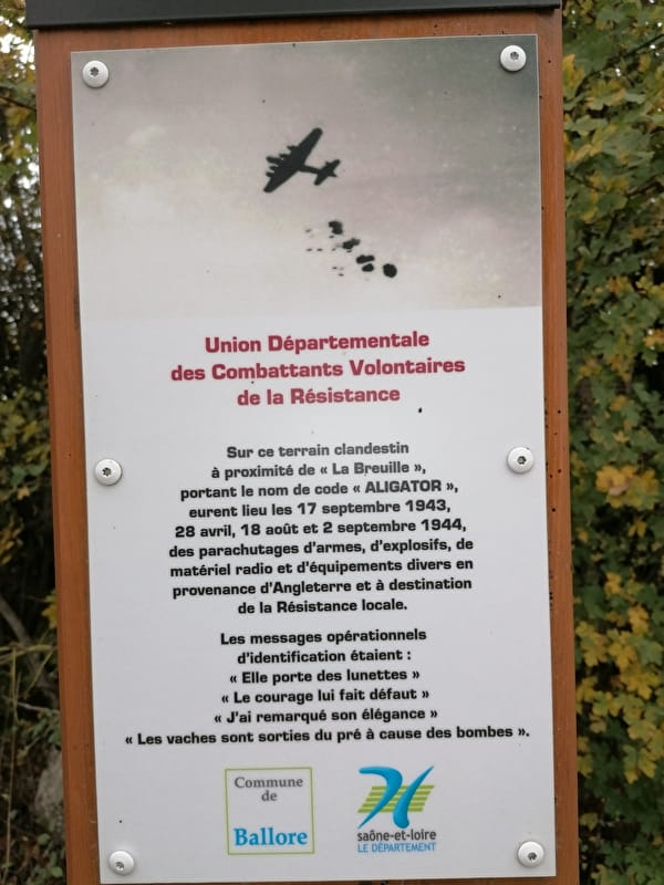 Les Combattants Volontaires de la Résistance (CVR) de Saône-et-Loire ont impulsé, depuis 2011, un projet de matérialisation des anciens lieux de parachutages de la Seconde Guerre mondiale pour rendre hommage à des hommes et des femmes engagés, prenant des risques importants, pour poursuivre la lutte contre l'ennemi.