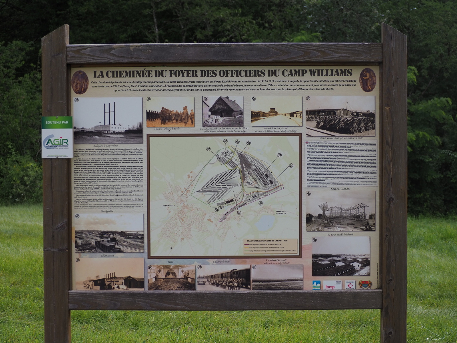 Each American soldier who landed had 10 tonnes of equipment, which had consequences for the camp's organisation. Weapons, military clothing and food were sent on demand to the American regulating station at Is-sur-Tille from the storage buildings. The management of the forward depots was handled by the American Engineers. The engineers began construction of the camp in September 1917 and it was completed in March 1918. The camp covered almost 300 hectares and included warehouses along 13km of narrow gauge track and 95km of normal track. A bakery was also used to feed all the American soldiers: its production capacity was 365 tonnes of bread per day. A power station with two 500 kW turbines provided the energy. In Is-sur-Tille, we can see vestiges reminding us of the American presence of the soldiers on the territory: the restored chimney (vestige of the officers' hostel building) and the tanks located on a hillside near the RD 959. To commemorate the presence of the American army a stele has been erected in the industrial zone.