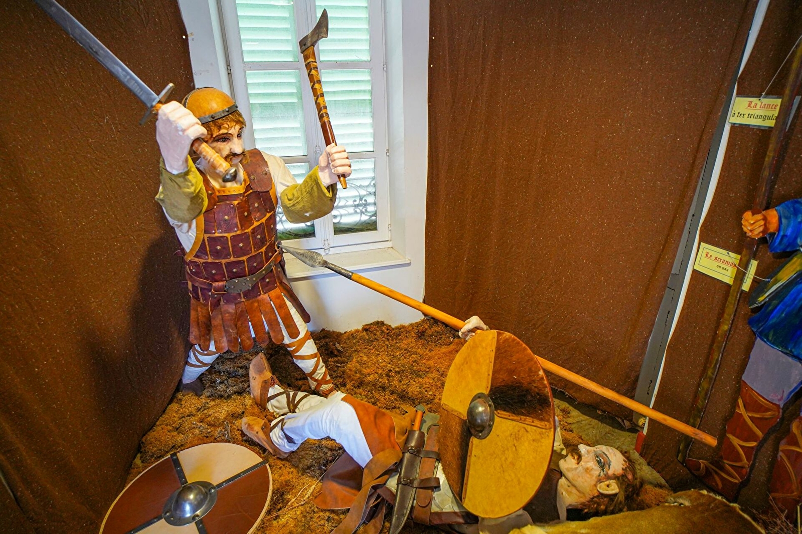 Au rez-de-chaussée, maquettes de Jacques Perreaut et peintures de Fabienne Dubois évoquant le site de la bataille (sculptures à découvrir dans le bourg). À l’étage, un combattant carolingien armé vous attend. Revivez cette page d’histoire grâce à une maquette animée de bande-son. Le musée s’est enrichi de pointes de lances trouvées sur le site.