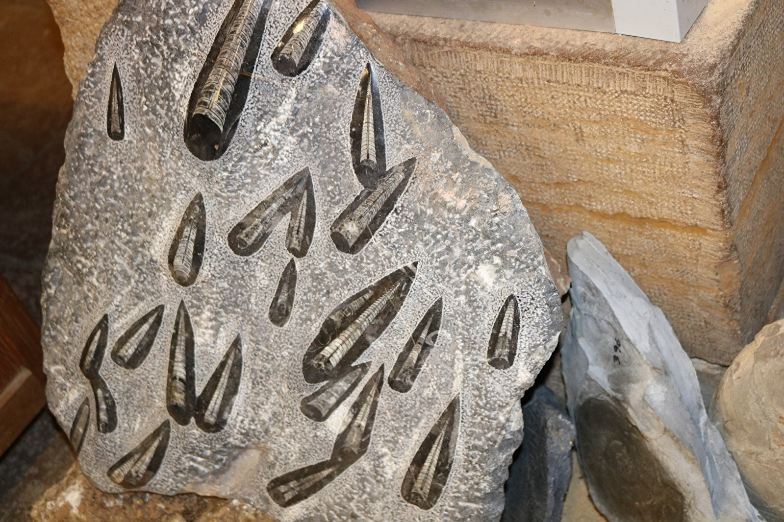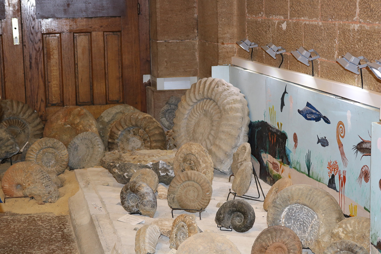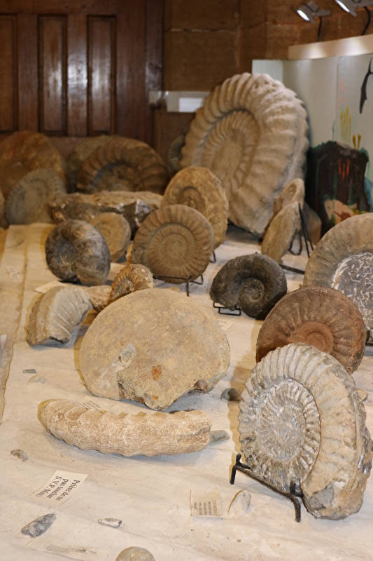 Vous pourrez y admirer de nombreuses septaria de taille exceptionnelle ainsi que fossiles et ammonites. Des cristaux tels les calcites, gypses et quartz sont aussi exposés.