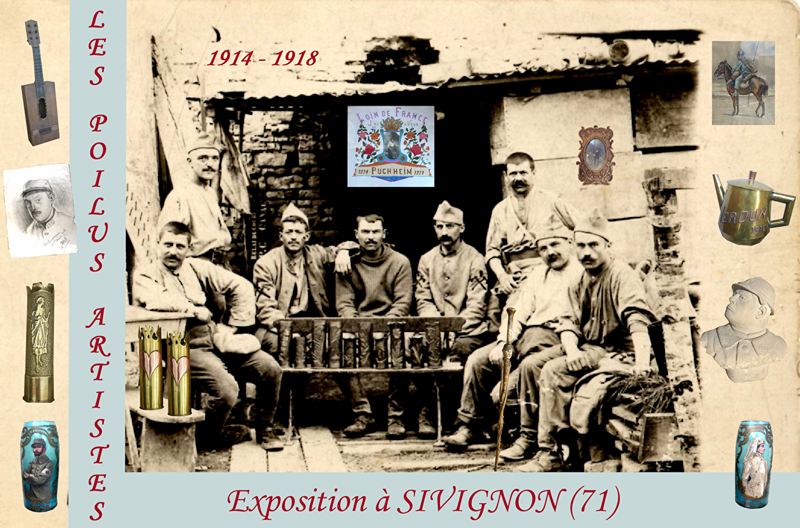 Les chefs d’œuvre des soldats artistes racontent 1914-1918. Lorsque la guerre éclate en août 1914, les soldats français partent la fleur au fusil persuadés d'être rapidement de retour chez eux. Mais la guerre s'enlise. Au front dans les tranchées ou à l'arrière, pendant les courtes périodes de repos, les poilus commencent à fabriquer une multitude d'objets... Leur première vocation est utilitaire : le briquet indispensable pour chauffer le vin gelé, griller une gauloise, vient remplacer les allumettes trop humides, les lampes ou les bougeoirs permettent de s'éclairer, les cannes de marcher sans s'embourber. Ensuite pour tromper l'angoisse entre deux assauts, défier l'ennui, s'occuper l'esprit, les poilus se mettent à fabriquer des cadeaux qu'ils destinent à leur famille : timbales ou bracelets, cadres photos, parures de bureaux, vases... A l'occasion des commémorations du centenaire de la mobilisation d'août 1914, plus de 1000 chefs-d’œuvres de poilus sont exposés sur 420 m² : douilles sculptées, cannes, broderies, briquets, bagues, encriers, coupe papiers, lampes, avions, casques miniatures, plumiers... sans oublier les objets rapportés de captivité. Des panneaux explicatifs avec des centaines de cartes postales anciennes et documents: les front et les tranchées, les événements, la propagandes batailles... La reconstitution de scènes d'époques (un champ de bataille, abri sous terrain, fabrication d'objets dans une tranchée, l'arrière du front, la captivité en Allemagne) et des vision de vues stéréoscopiques.