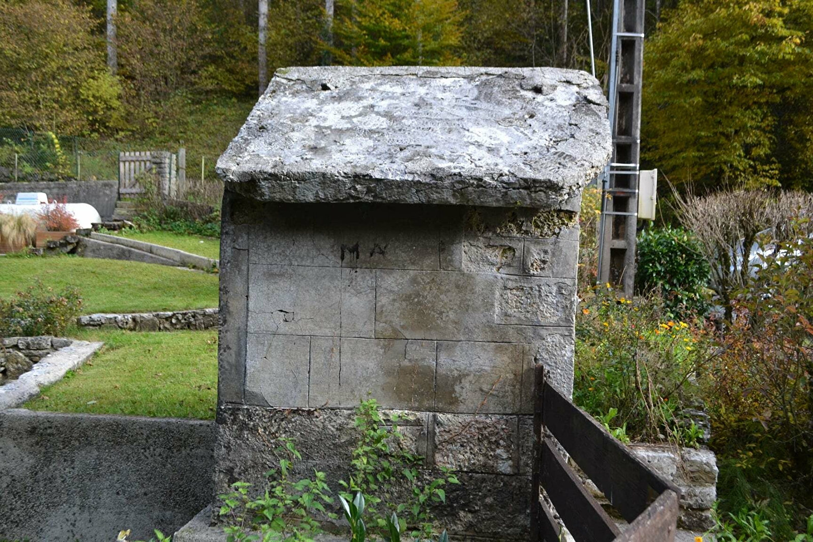 A l’entrée du chemin qui mène à la source de la Loue, cet édifice s’appuyant sur un muret de pierres sèches élève son toit à deux pentes en dalles de pierres de 2.25 m de hauteur. Sa façade en pierre de taille présente une ouverture en plein cintre à peine plus haute que large. La pierre d’appui épaisse s’avance sans déborder latéralement. La niche est fermée par une grille losangée en fer plat et renferme une statue de Notre-Dame de Lourdes en plâtre.