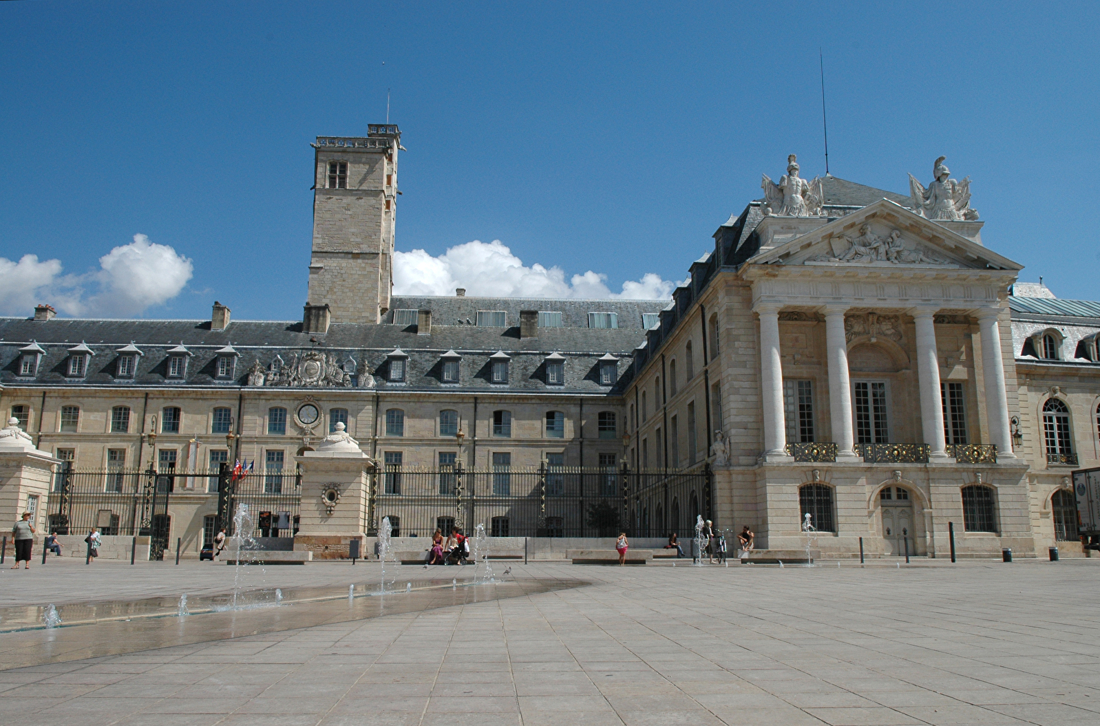 Derrière la belle ordonnance classique de sa façade, le palais des ducs et des États de Bourgogne révèle plusieurs siècles d'histoire. L'ancien logis ducal (à l'est), reconstruit au XVe siècle sous Philippe le Bon, devenu logis du roi et du gouverneur de la Province à partir du XVIe siècle, se retrouve uni au palais des États de Bourgogne édifié à partir du XVIIe siècle (à l'ouest). Jules Hardouin-Mansart, premier architecte du roi, missionné pour dessiner la nouvelle place Royale (place de la Libération), unifie la façade de cet ensemble de bâtiments et crée le palais tel que nous le connaissons, centré sur une cour d'honneur et la place, encadré de deux cours : cour de Flore à l'ouest et cour de Bar à l'est. La tour Philippe le Bon, conservée au centre de cet ensemble, demeure le symbole du pouvoir sur la ville.