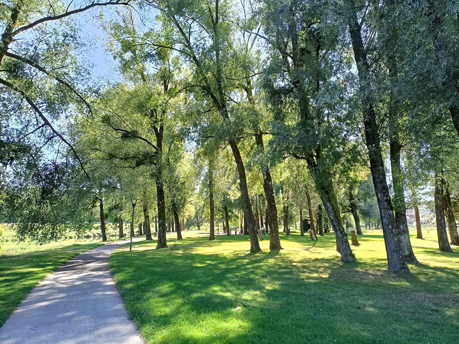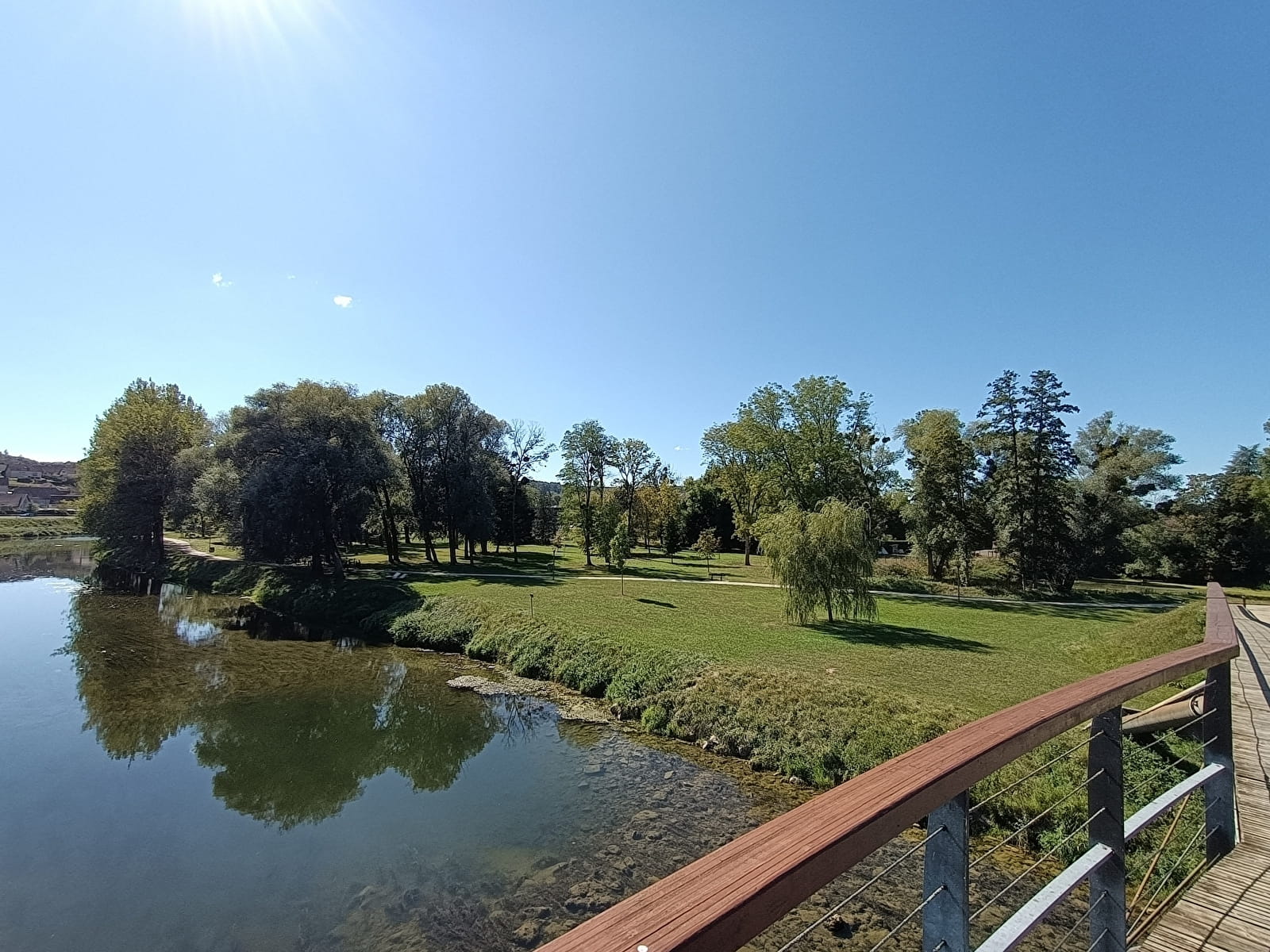 Le long du Doubs, profitez d'un parc arboré avec jeux pour enfants, espace fitness, table de pique-nique, piste cyclable pour enfants, terrain de pétanque et de volley...
