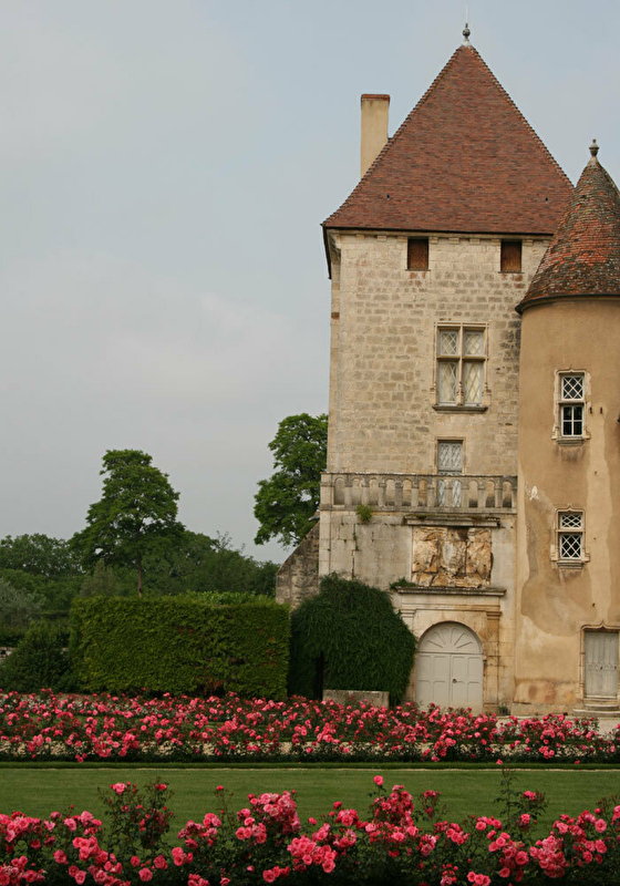 Le parc fleuri aménagé en terrasses et parterres après la Révolution offre de belles perspectives sur le château. Parterre de 500 rosiers dans la cour d'honneur, jardin vert, or et argent, mixed border fleuri de juin à octobre.