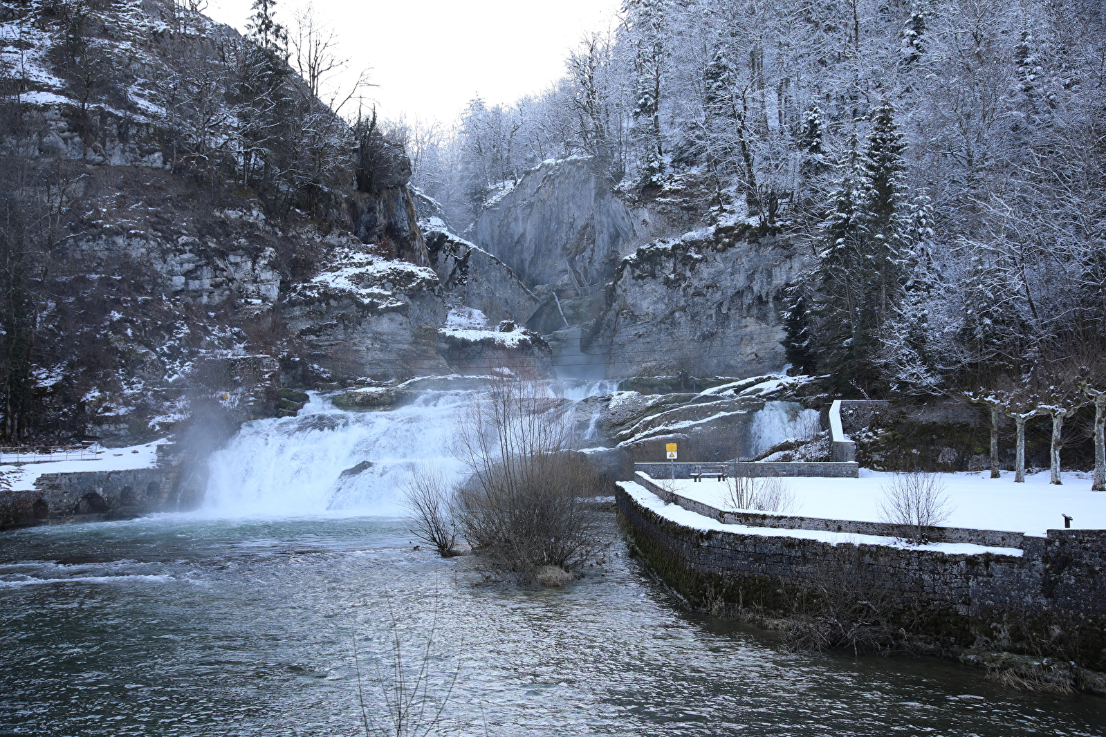 Cette dernière a pourvu en énergie d’anciennes forges situées à proximité jusqu’au début du 20ème siècle, pour ensuite alimenter une centrale hydroélectrique. Lorsque le débit du cours d’eau se fait intense, la rivière surgit et chemine au fond des gorges dans un bouillonnement sourd et impressionnant.