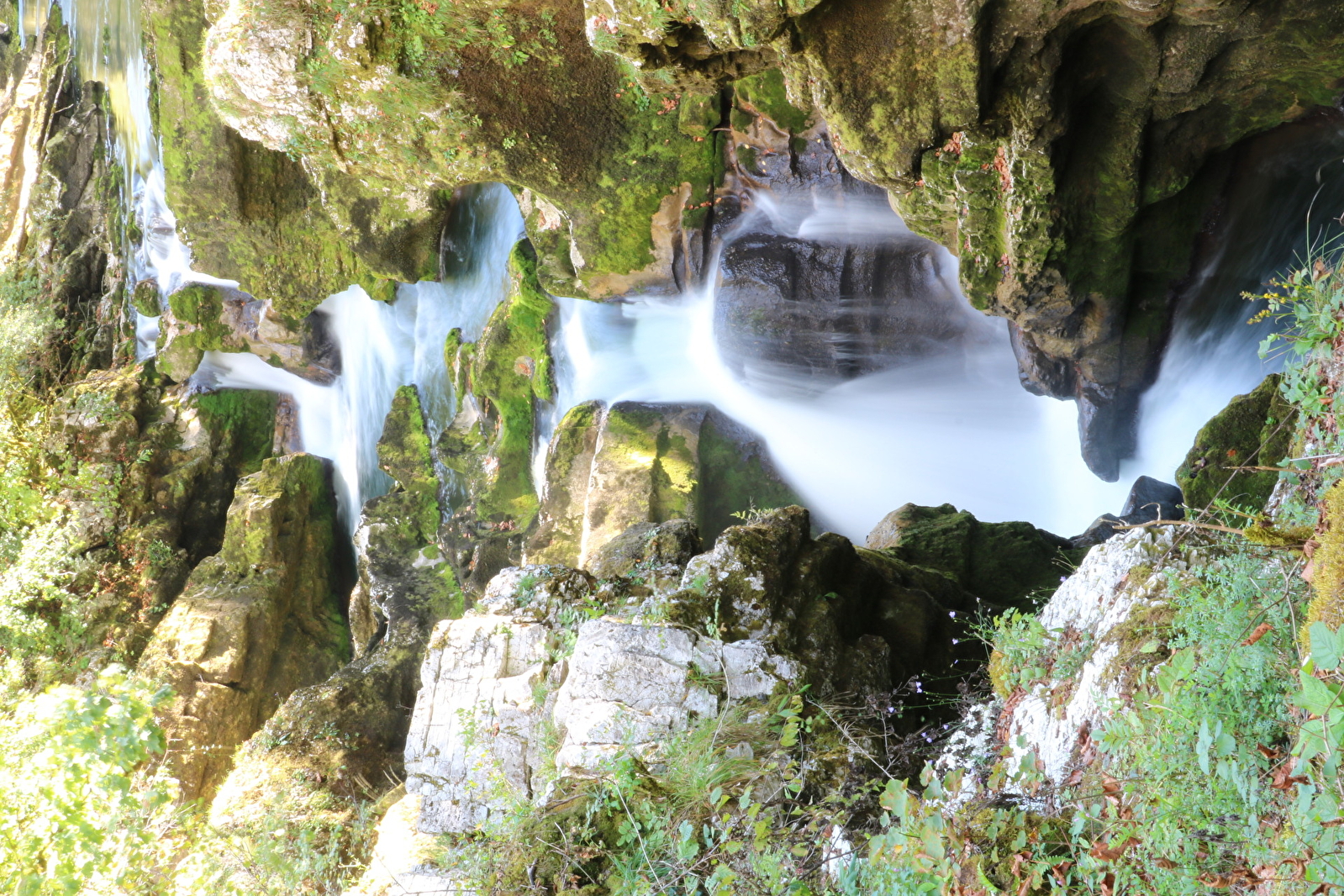 C’est dans une gorge exiguë et profonde d’une quinzaine de mètres, à quelques kilomètres de sa source, que la rivière d’Ain s’est frayé un chemin, creusant inlassablement la roche au fil des millénaires. Le cours d’eau s’engouffre ainsi sous terre avant de jaillir à Bourg-de-Sirod, dans une vasque donnant naissance à une splendide cascade en forme de « queue de cheval ».