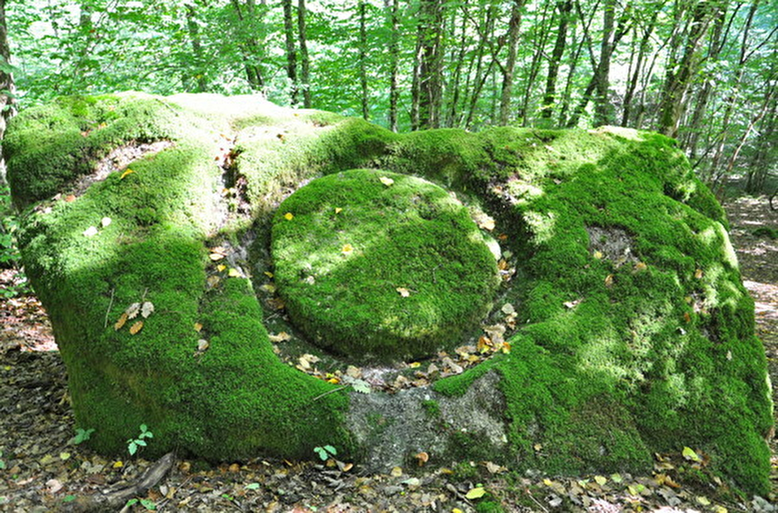 Sur une face du rocher une meule a été extraite et de l’autre, on ne sait pour quelle raison les carriers n'ont pas terminé leur besogne et l’on peut alors comprendre quelle était leur méthode de travail.