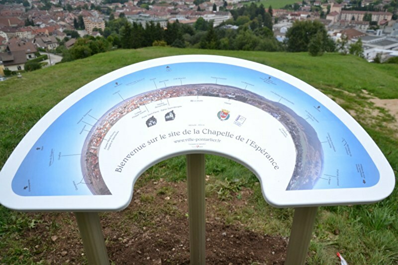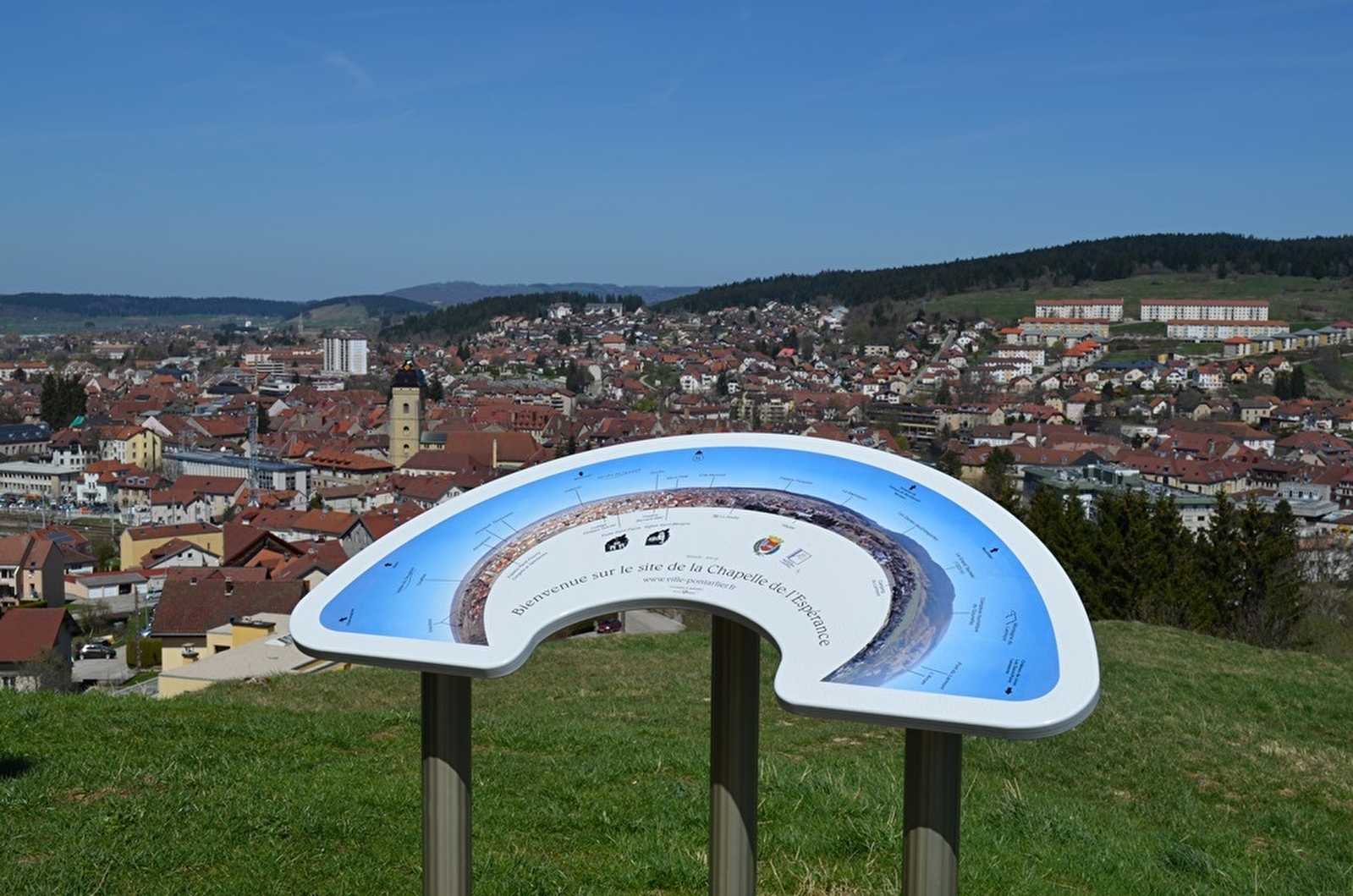 Beau point de vue sur la ville de Pontarlier, table d'orientation à 852 m.