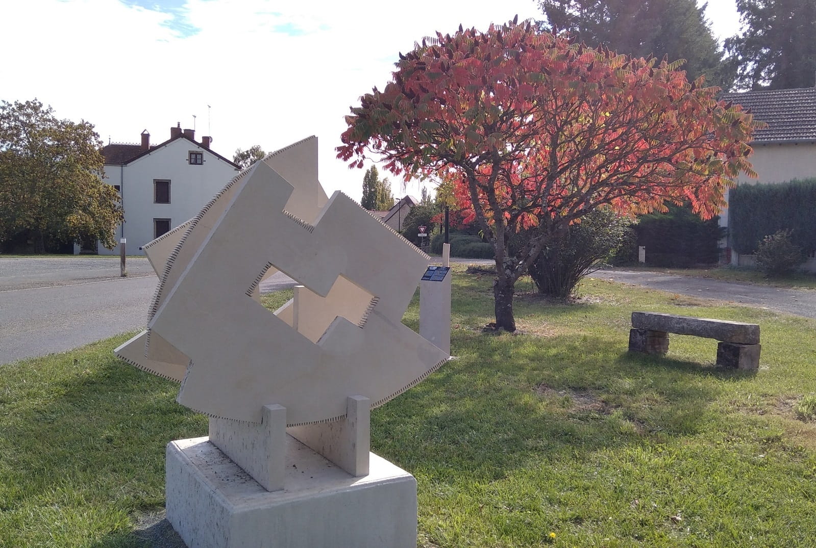 La sculpture sérielle "Les Portes", présentée dans son village natal grâce aux instances locales, a été conçue par le sculpteur en 1961 avant d'être réalisée en 2023 afin de lui rendre hommage. En contemplant cette œuvre, admirez également le matériau dans lequel elle a été sculptée. Il s'agit de la pierre du Puley, devenu rare de nos jours.