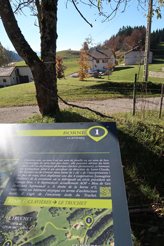 Accès : Se rendre au village de Septmoncel puis poursuivre jusqu’au lieu-dit « Clavières » situé à mi-chemin entre Septmoncel-Les Molunes et