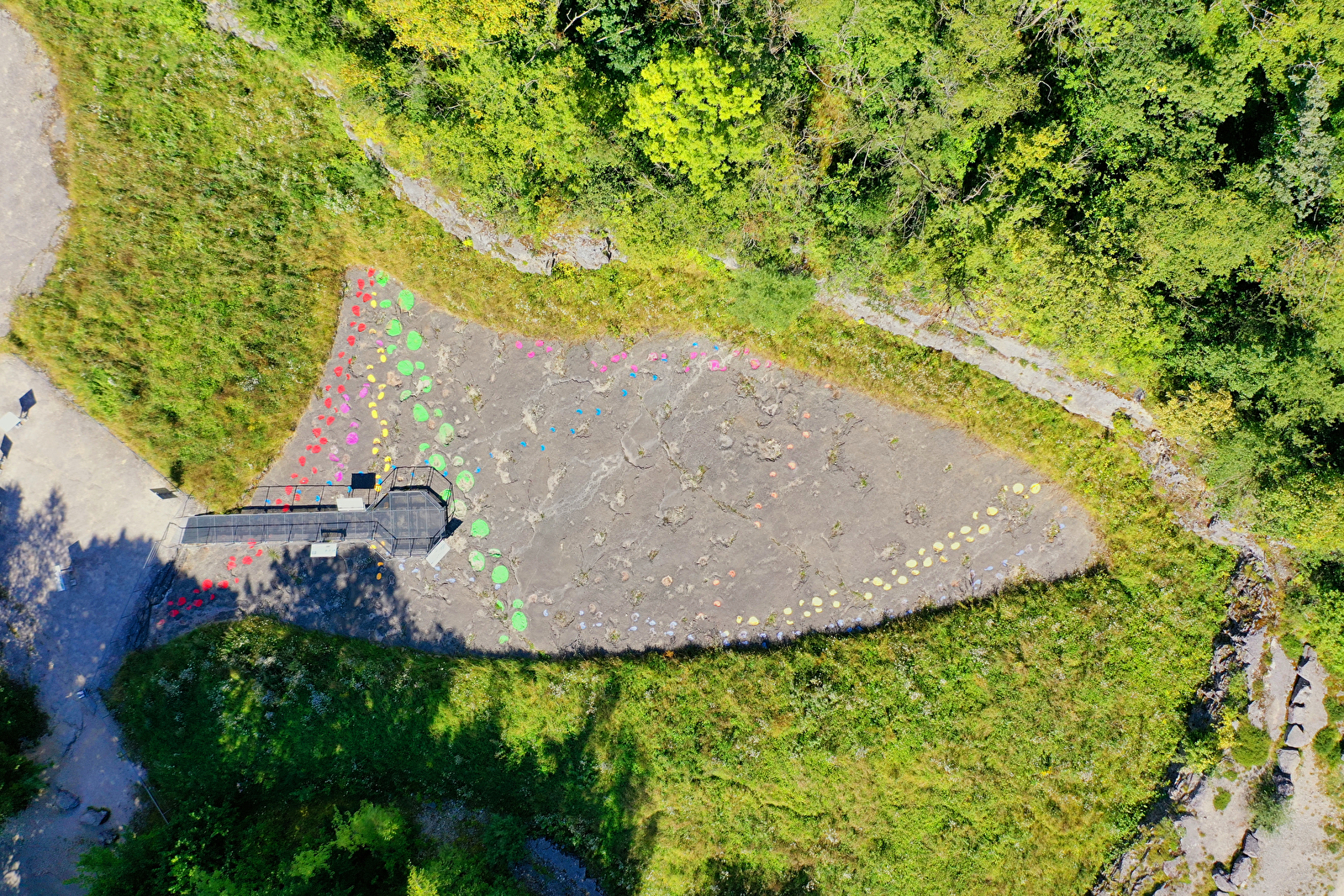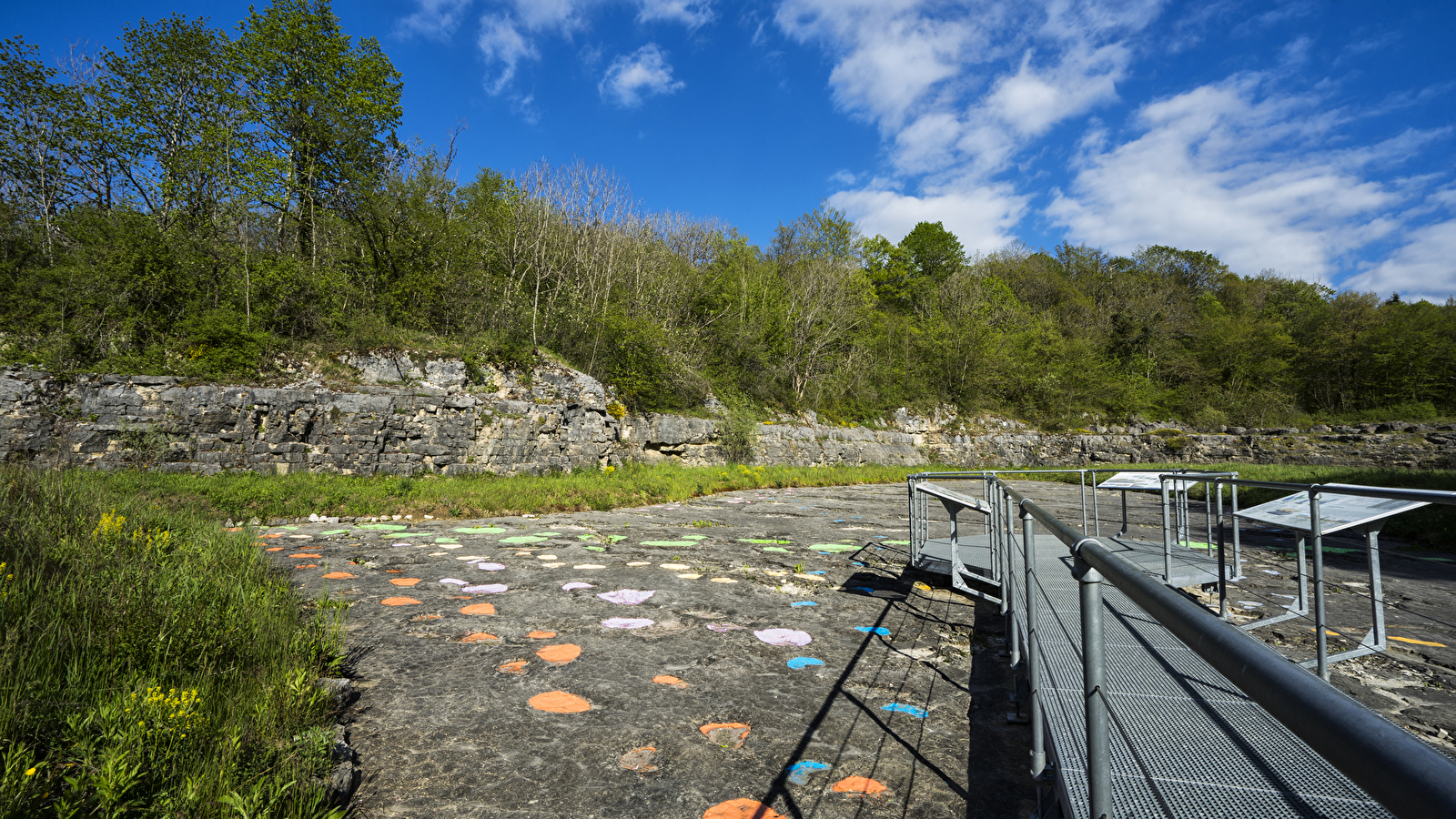 Sans protection, la fragilité de la dalle calcaire, le gel hivernal et le piétinement des visiteurs conduisaient à une altération irrémédiable de ce site exceptionnel. Une grande partie du site est désormais protégée. Une passerelle de visite et des panneaux permettent de comprendre le milieu dans lequel ont évolué les dinosaures au jurassique, il y a 155 millions d’années.