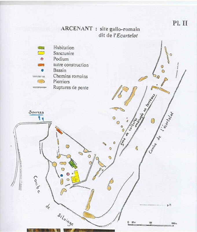 Dans la forêt à Arcenant, accès par la D18 et sentiers balisés. Ensemble rural cultuel avec temple et exploitation agricole. Accès libre permanent (éviter l'hiver en période de chasse).