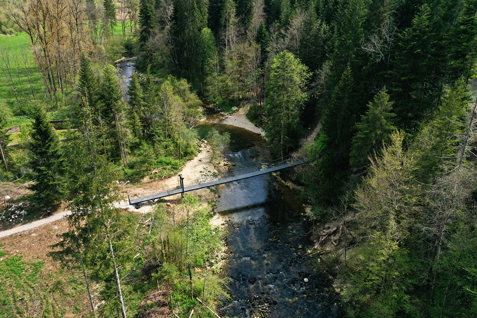 Le circuit est par ailleurs agrémenté de deux passerelles – dont une de type « pont suspendu » ! – qui offrent une vue privilégiée sur les cours d’eau, non loin de là où l’Ain et sa petite sœur, la Serpentine, confluent.